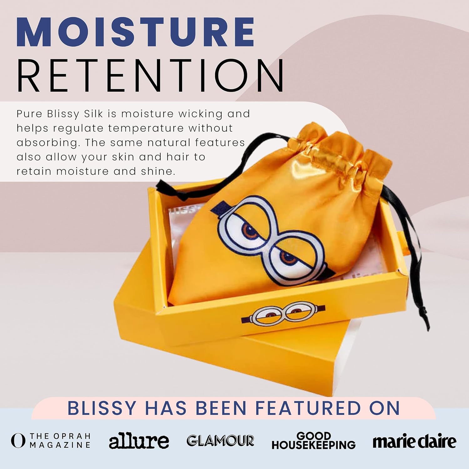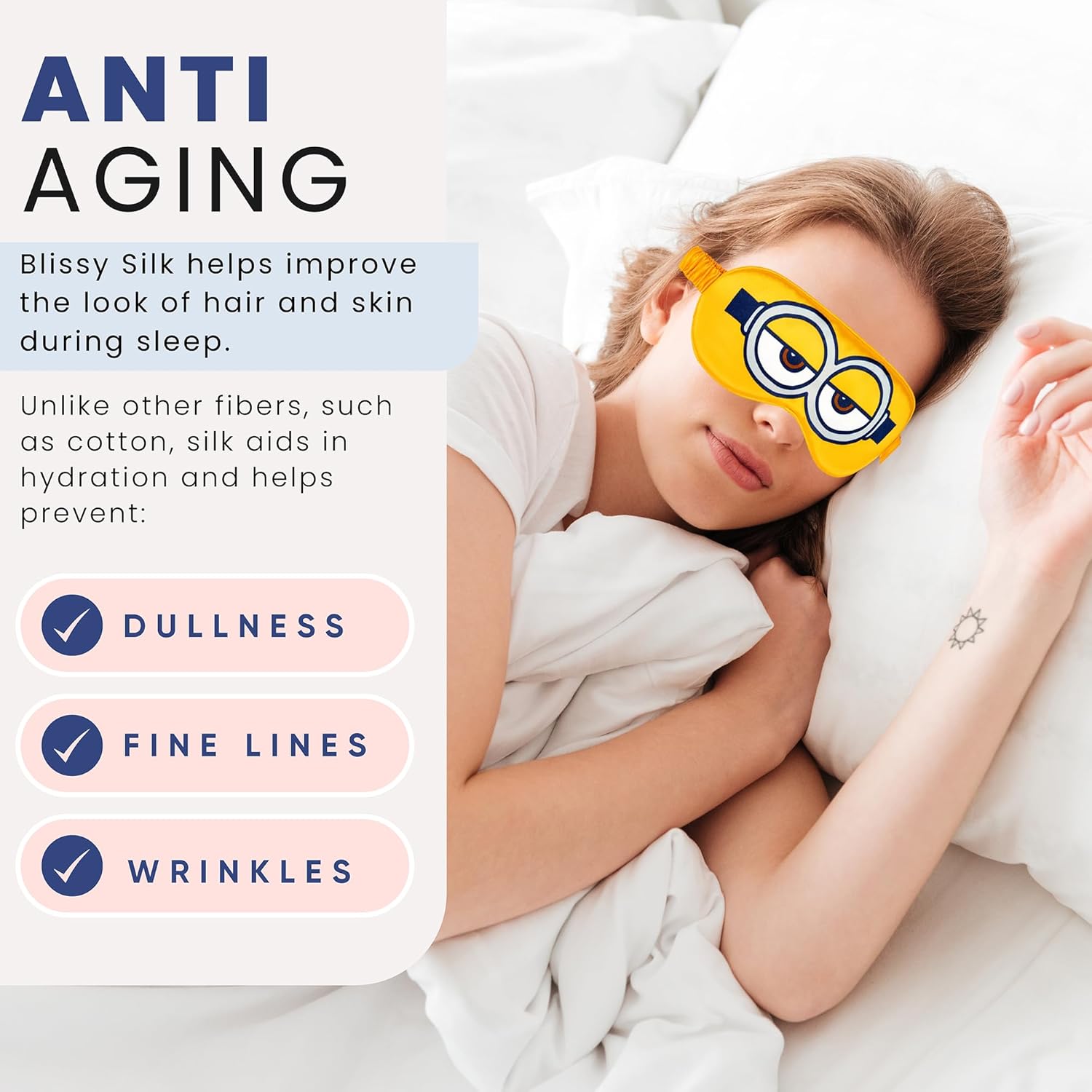 Blissy Silk Sleep Mask - Silk Eye Sleeping Mask for Women & Men for Total Blackout - 100% Pure Mulberry Silk, 22 Momme 6a Fibers - Blindfold Silk Sleep Mask Side Sleeper Eye Cover (Minion)