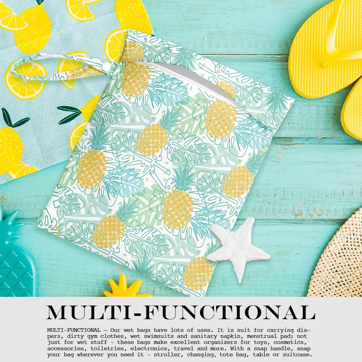 • MULTI-FUNCTIONAL – Our wet bags have lots of uses. It is suit for carrying diapers, dirty gym clothes, wet swimsuits and sanitary napkin, menstrual pad; not just for wet stuff - these bags make excellent organizers for toys, cosmetics, accessories, toiletries, electronics, travel and more. With a snap handle, snap your bag wherever you need it - , changing,tote bag, table or suitcase.