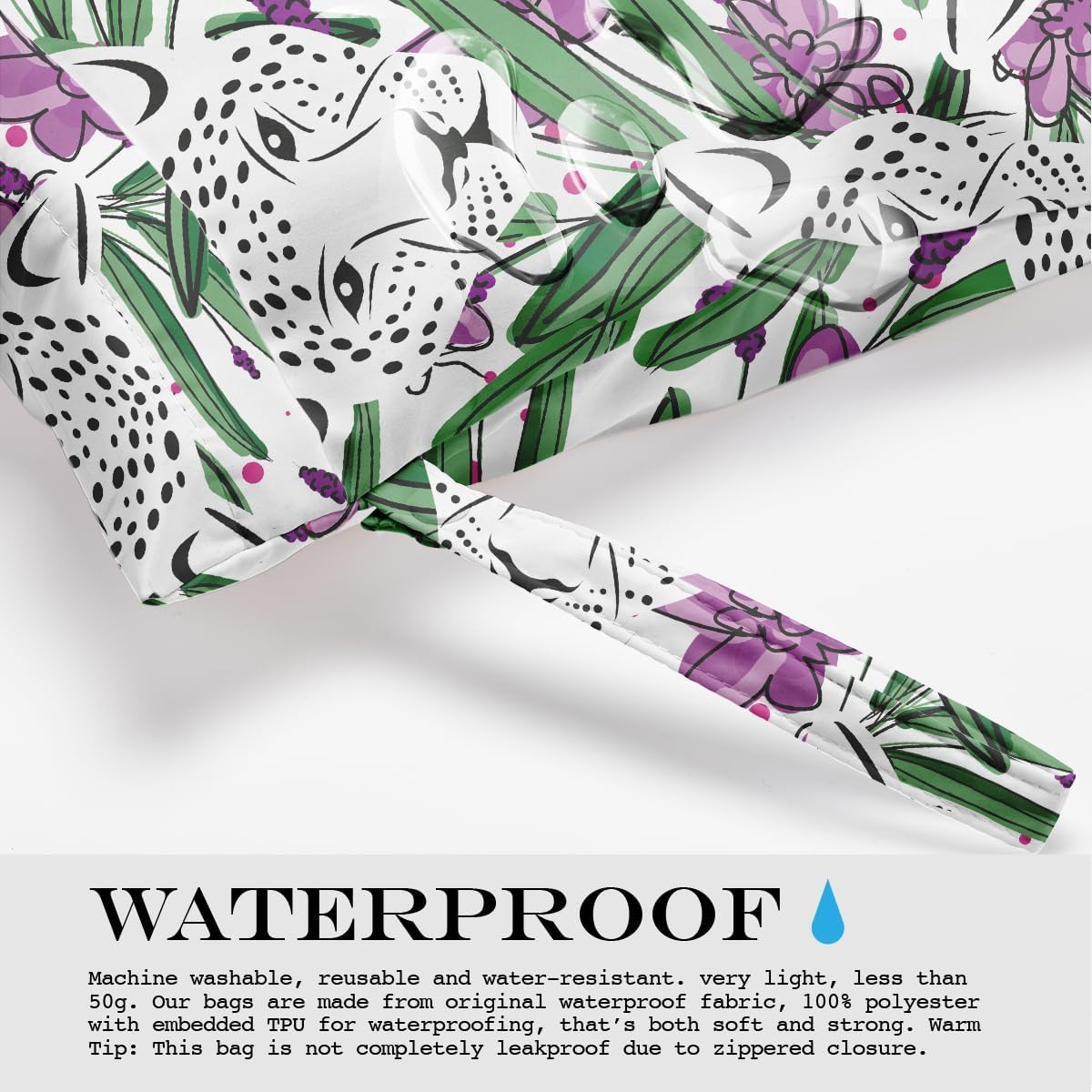 • WATERPROOF - Machine washable, reusable and water-resistant. very light, less than 50g. Our bags are made from original waterproof fabric, 100% polyester with embedded TPU for waterproofing, that’s both soft and strong. Warm Tip: This bag is not completely leakproof due to zippered closure.