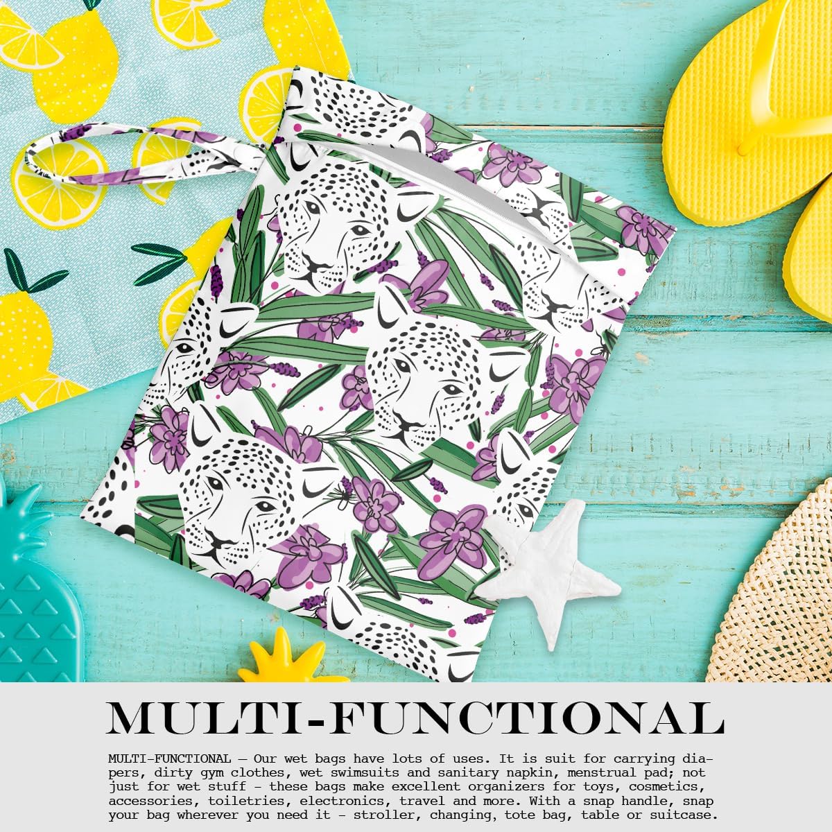 • MULTI-FUNCTIONAL – Our wet bags have lots of uses. It is suit for carrying diapers, dirty gym clothes, wet swimsuits and sanitary napkin, menstrual pad; not just for wet stuff - these bags make excellent organizers for toys, cosmetics, accessories, toiletries, electronics, travel and more. With a snap handle, snap your bag wherever you need it - , changing,tote bag, table or suitcase.