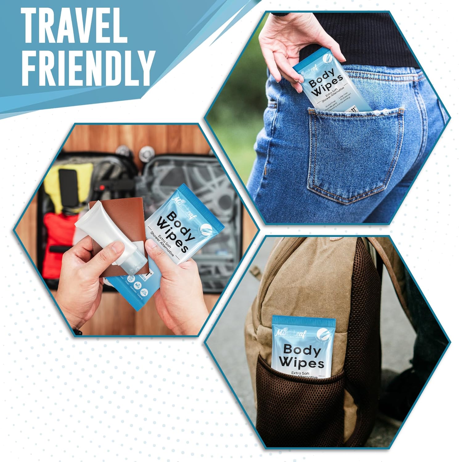 - CAMPING & TRAVEL FRIENDLY – Stay fresh anywhere with body wipes that remove sweat, dirt, and odor without water or soap—perfect for camping, hiking, and long trips.