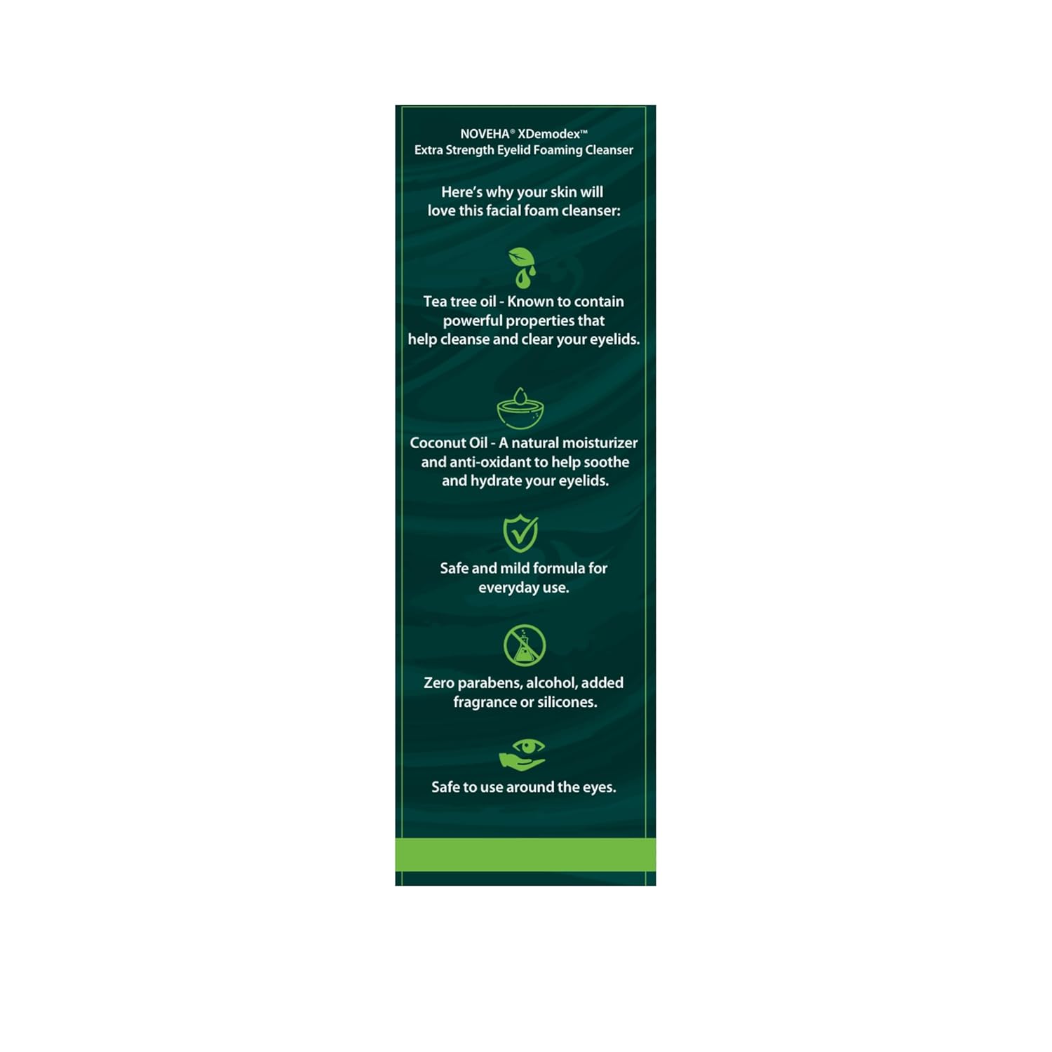 NOVEHA Demodex Eyelid Cleanser Foam | Extra Strength Tea Tree Oil Formula | Daily Face Wash For Eyelash, Demodex, MGD, Stye Eyes, Eye Irritations & Skin Dryness, 3.38 fl. oz. (100ml) - (Pack of 2)