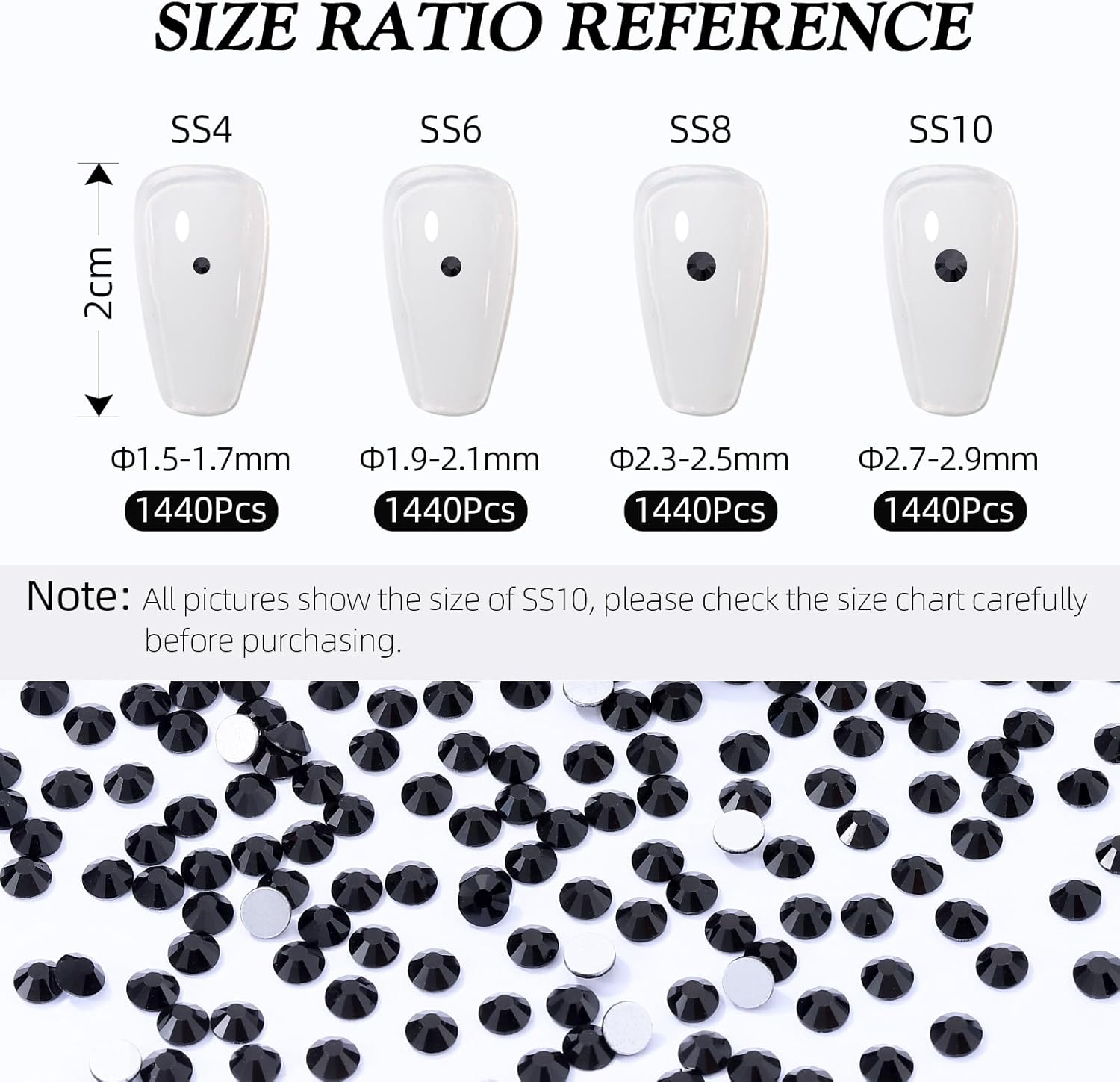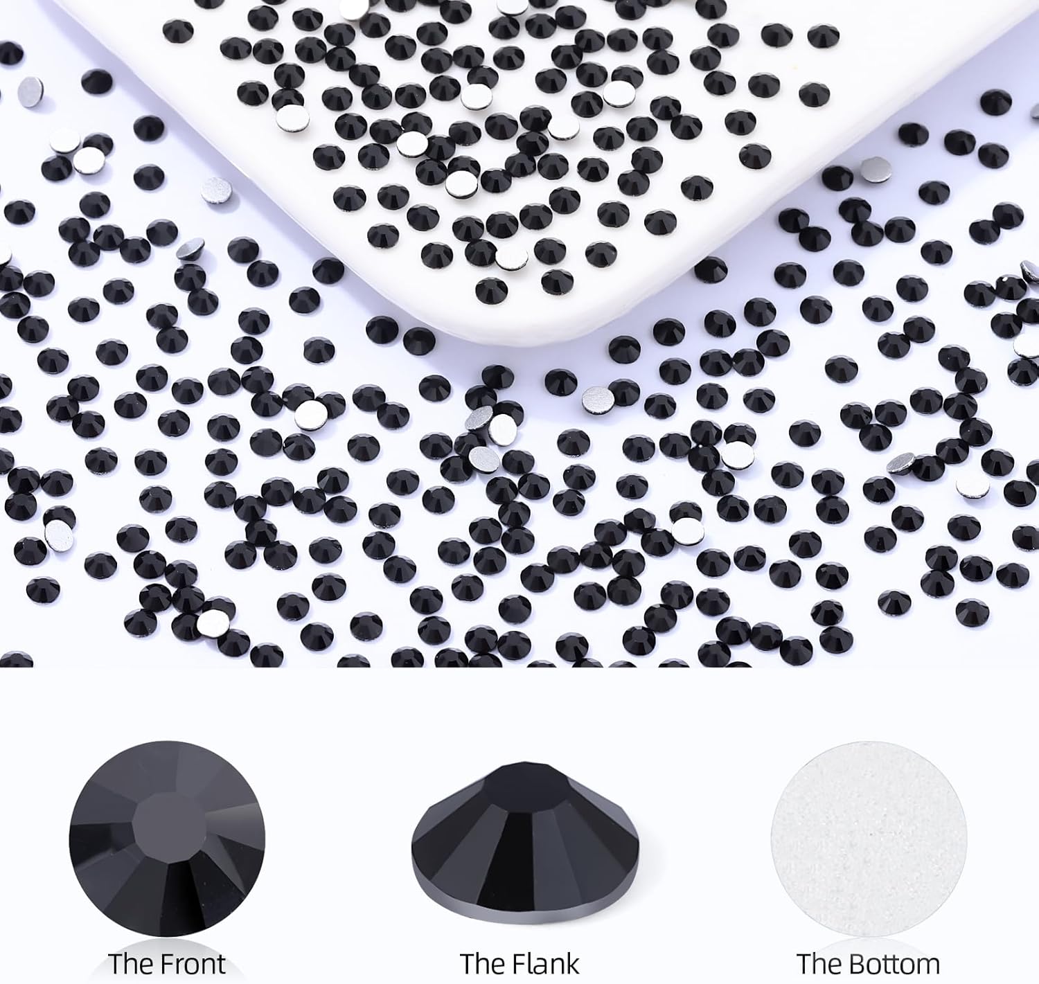 Black Flatback Rhinestones, Glass Rhinestones for Nail Art and Craft, Glue Fix, Loose Crystal Gemstones(Black, SS8, 1440pcs, 2.3-2.5mm)
