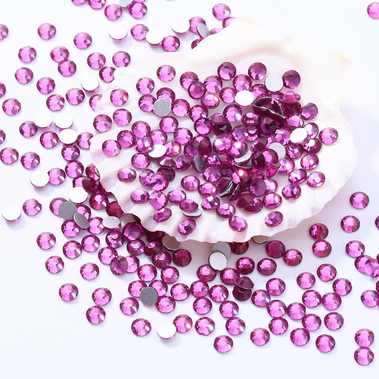 Fuchsia Flatback Rhinestones, Glass Rhinestones for Nail Art and Craft, Glue Fix, Loose Crystal Gemstones(Fuchsia, SS6, 1440pcs, 1.9-2.0mm)