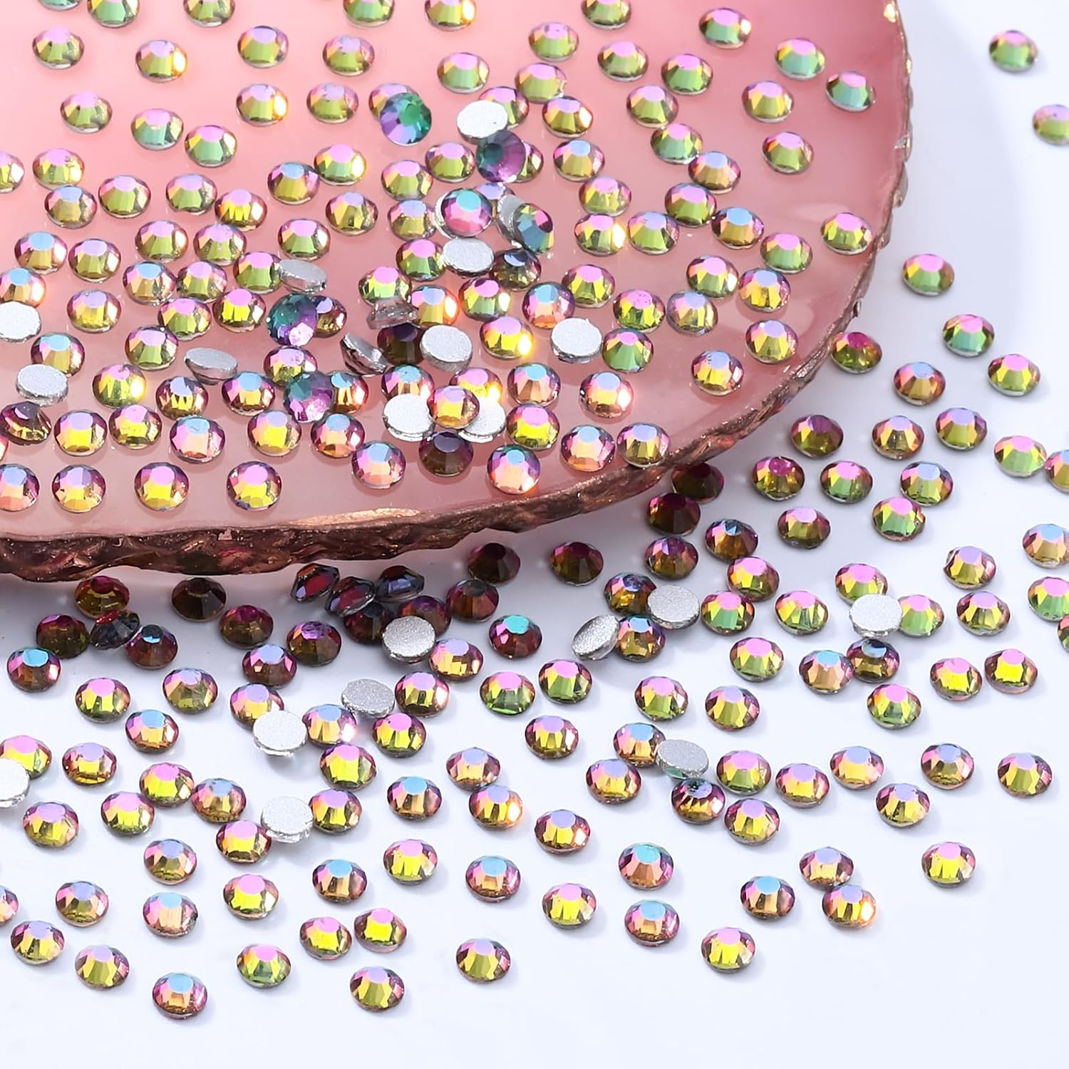 Green Volcano Flatback Rhinestones, Glass Rhinestones for Nail Art and Craft, Glue Fix, Loose Crystal Gemstones(Green Volcano, SS8, 1440pcs, 2.3-2.5mm)