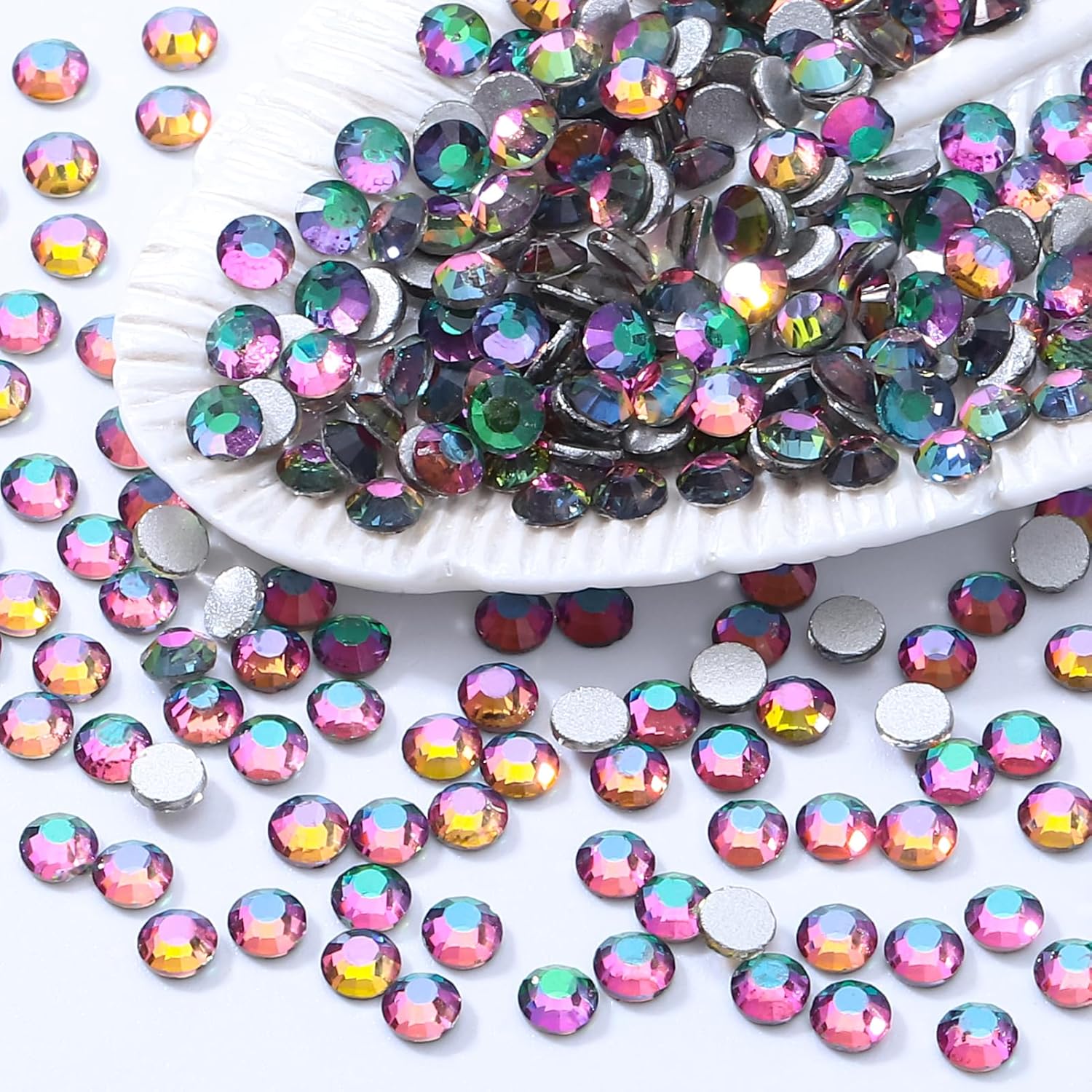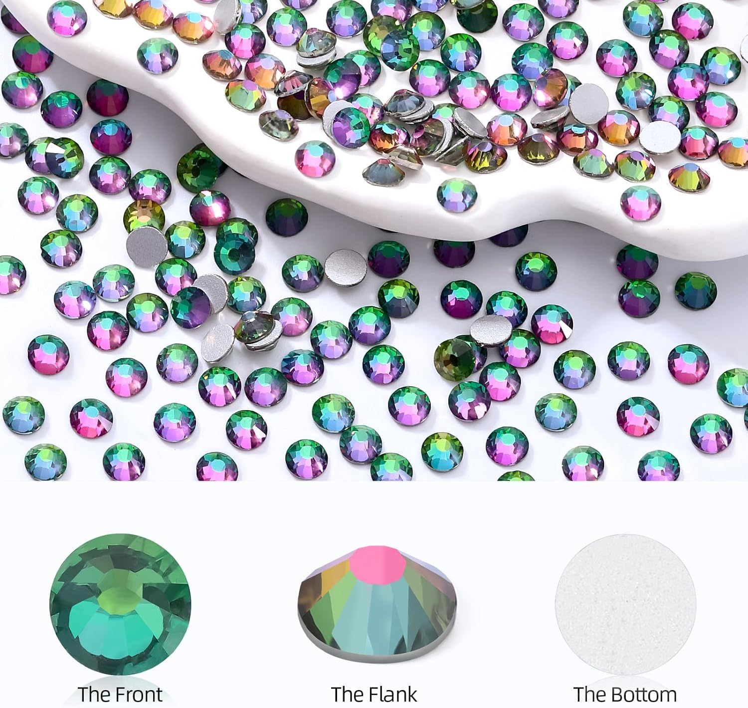 Green Volcano Flatback Rhinestones, Glass Rhinestones for Nail Art and Craft, Glue Fix, Loose Crystal Gemstones(Green Volcano, SS30, 288pcs, 6.4-6.6mm)