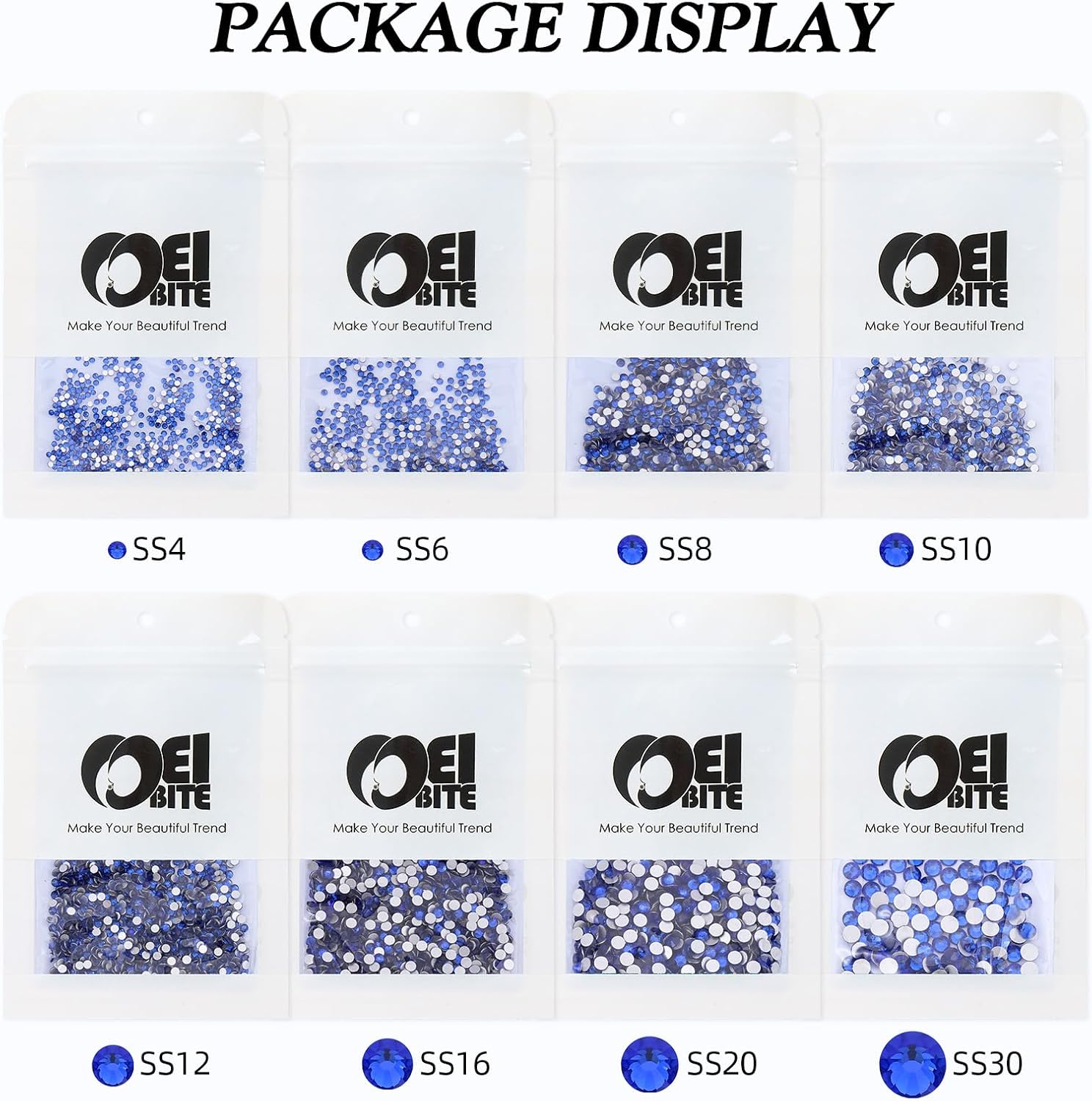 - Product Packaging: Bags packaging SS6 1.9~2.0 MM - 1440 Pcs blue flatback rhinestones