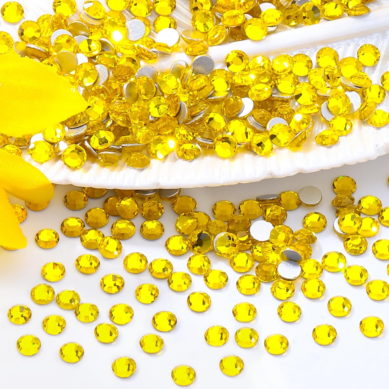 Citrine Flatback Rhinestones, Glass Rhinestones for Nail Art and Craft, Glue Fix, Loose Crystal Gemstones(Yellow, SS10, 1440pcs, 2.7-2.8mm)