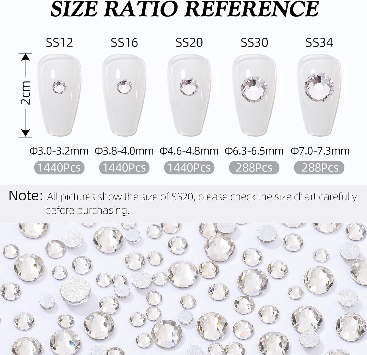 - Material: Glass/Artificial Crystal, Flat Back Round, High-precision cross-section, multi-sided cutting, high brightness, high Sparkly