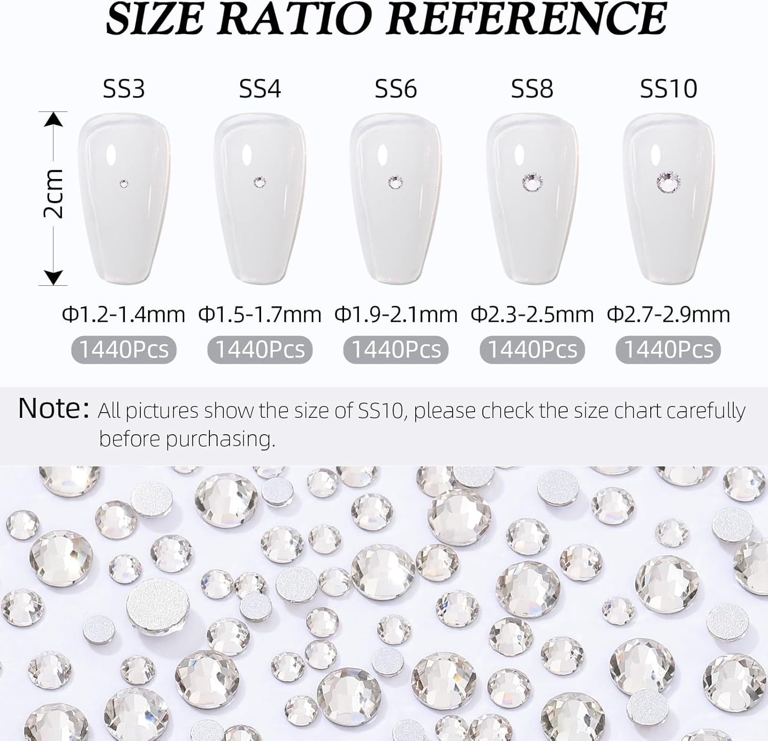 Crystal Clear Flatback Rhinestones, Glass Rhinestones for Nail Art and Craft, Glue Fix, Loose Crystal Gemstones(Crystal, SS6, 1440pcs, 1.9-2.0mm)
