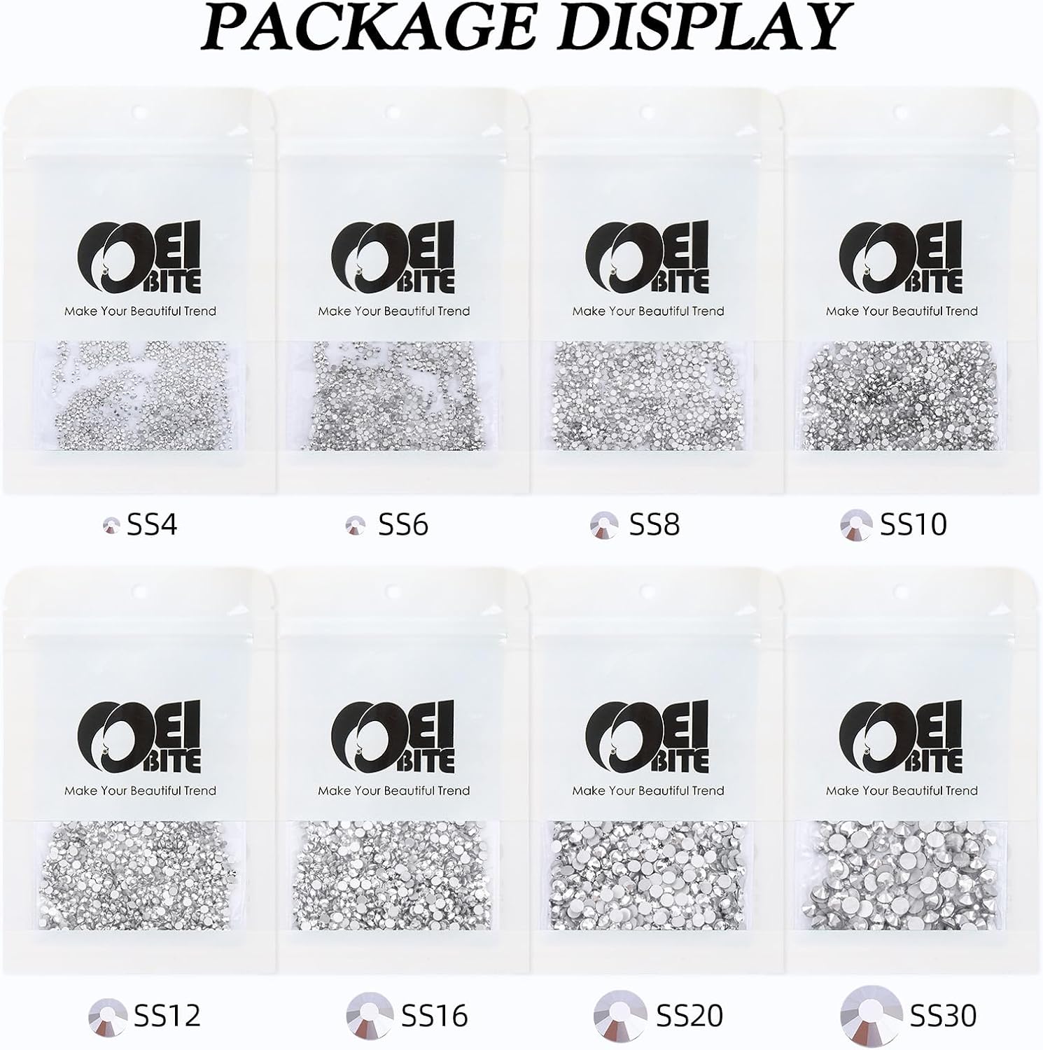 - Product Packaging: Bags packaging SS6 1.9~2.0 MM - 1440 Pcs silver flatback rhinestones