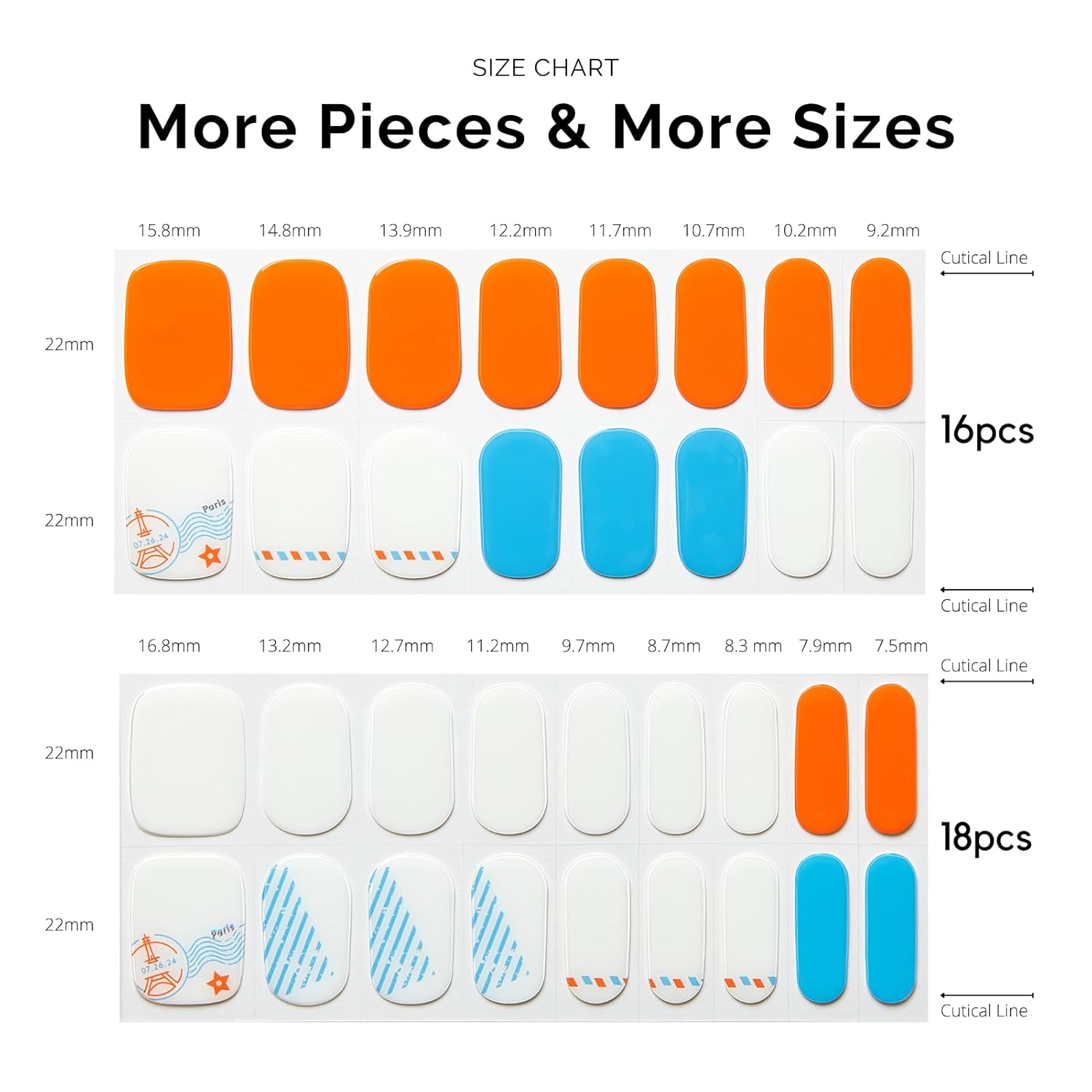 - 【34 PCS NAIL STRIPS】More Quantity & Sizes than Ever! - With 17 different sizes of our nail art stickers, you can easily find the right size to match your nails. - New curved side line fits even better with your nail shape for seamless adhesion.