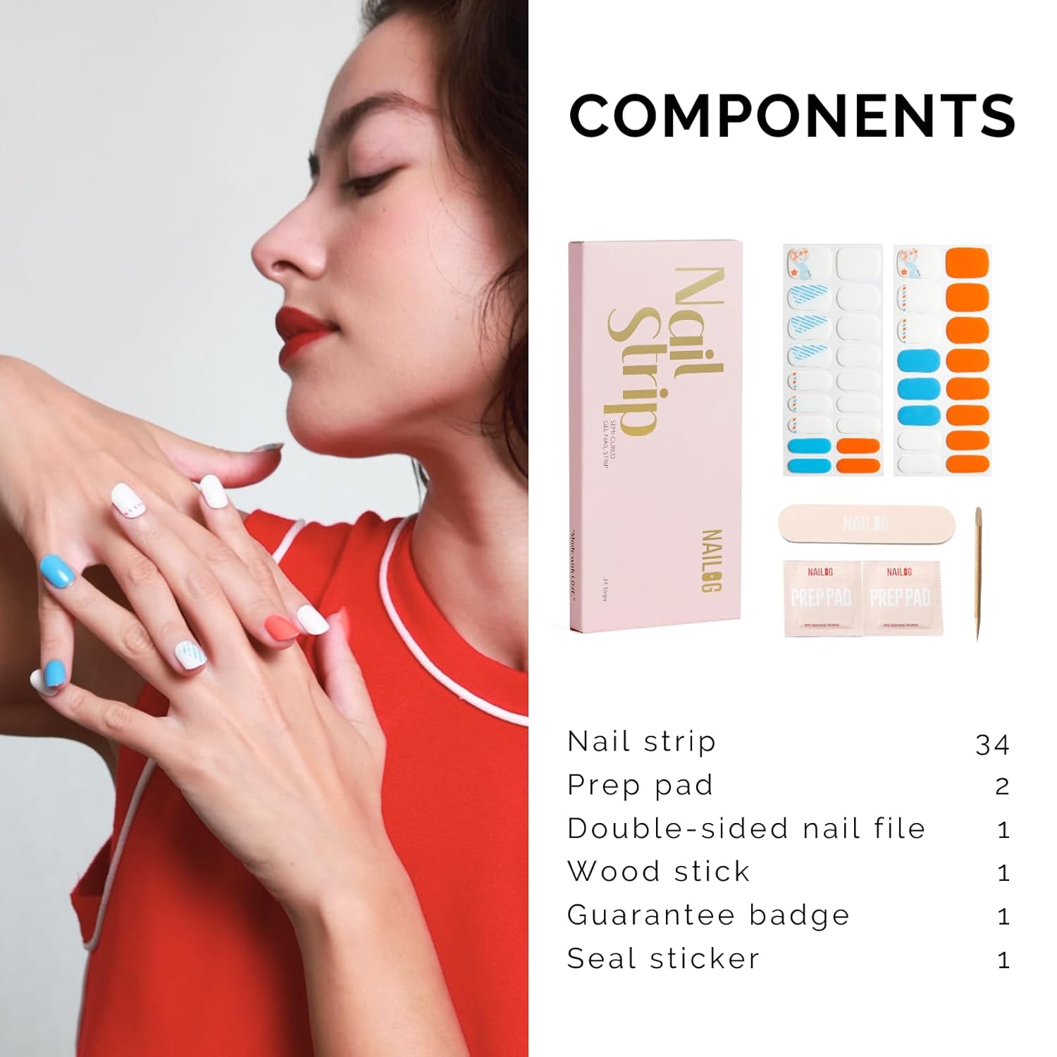 - 【EASY TO APPLY】With an easy & fast application method, you can get a perfect nail look in minutes! - Nailog semi cured nail stickers are suitable for both manicurists and beginners, so you need not hesitate, even if you have never had a manicure.