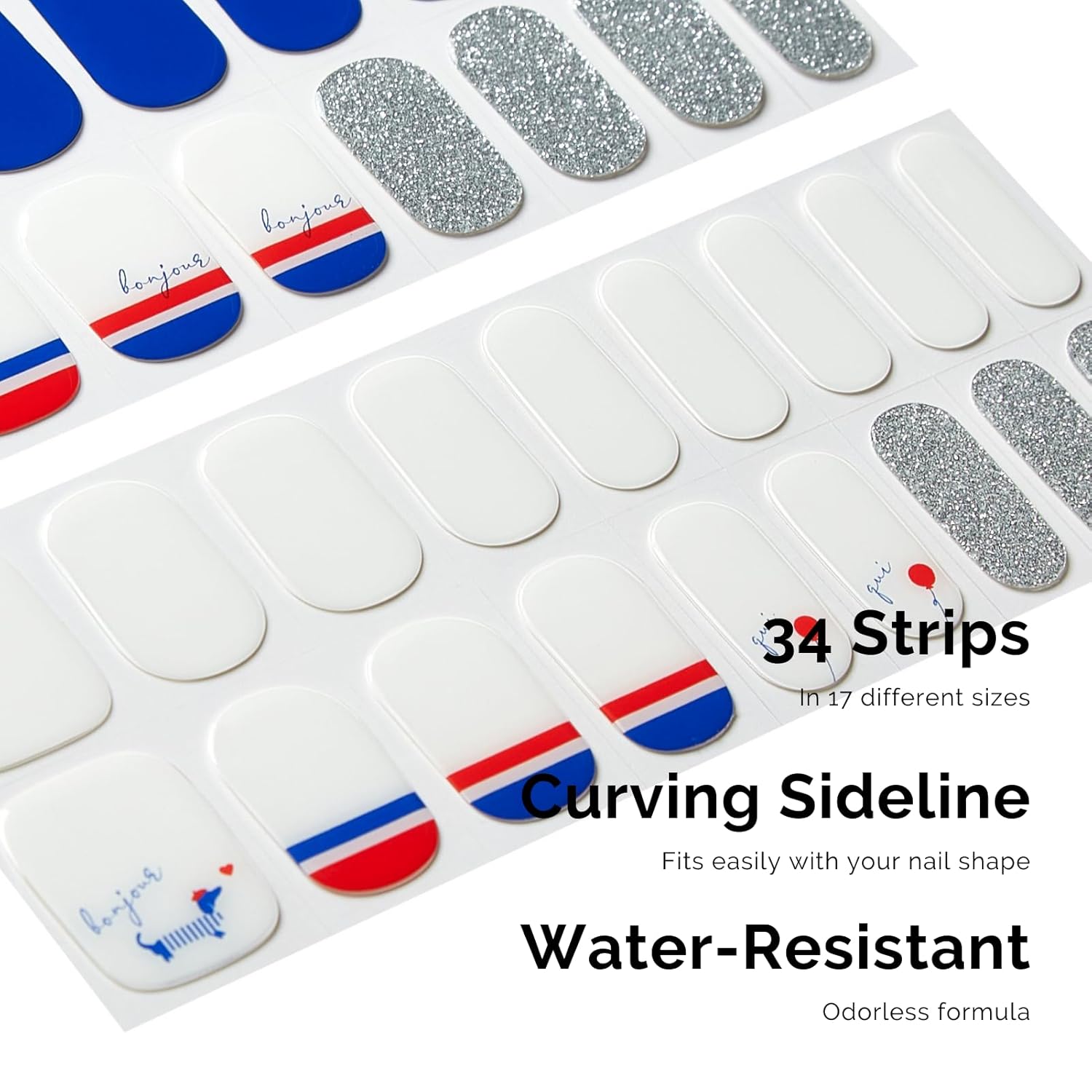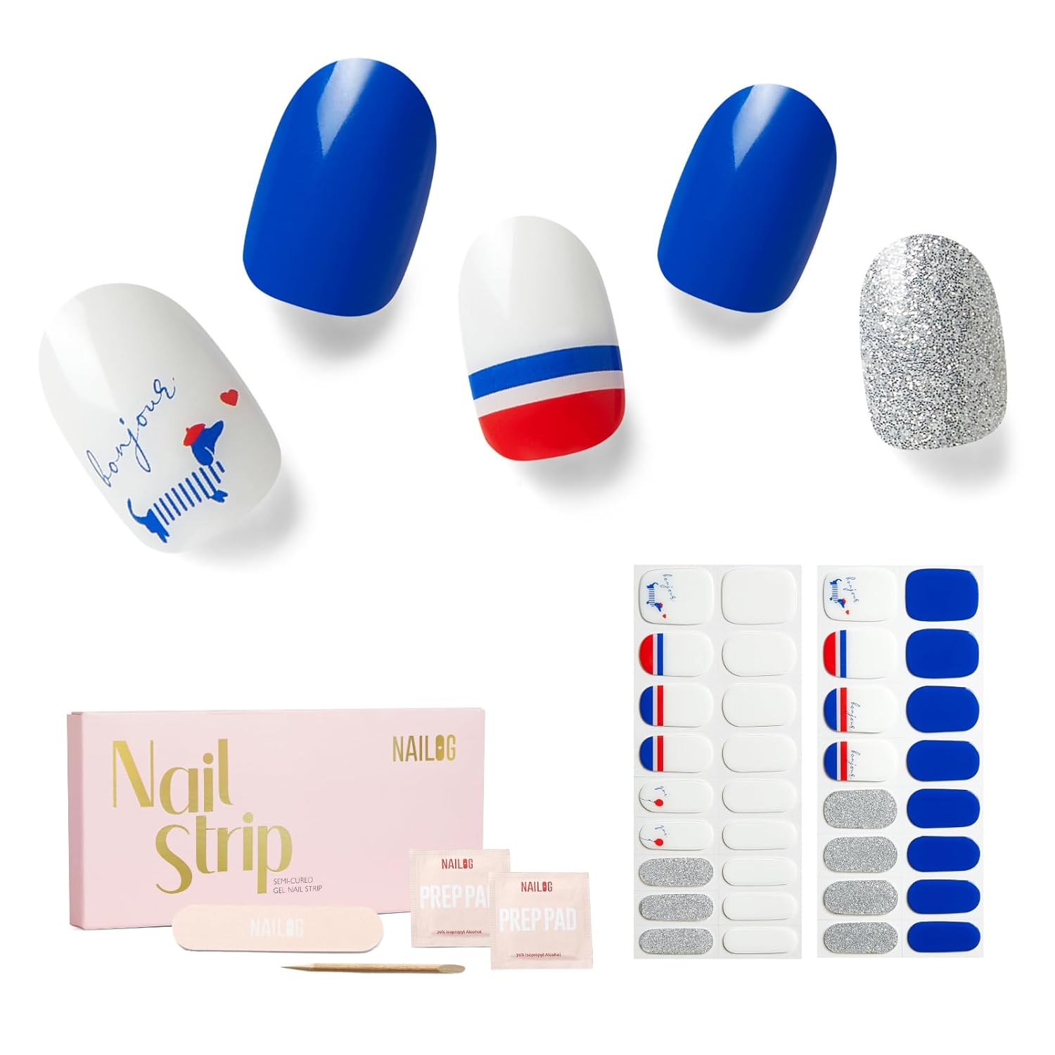 NAILOG Semi Cured Gel Nail Strips - 34 pcs | Buy 2 Get 1 UV Lamp | Long Lasting Nail Polish Sticker Wraps with Glossy Gel Finish, Bonjour