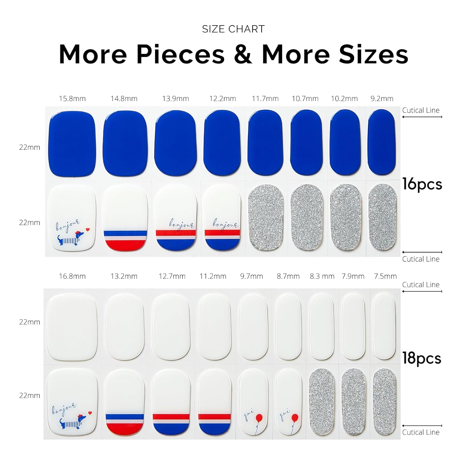- WHAT YOU GET: 34 Pieces gel polish strips in 17 sizes, 2 prep pads, 1 nail file, and 1 wooden stick. -Our semi cured nail strips are free from toxic, animal-derived, or harmful ingredients and are vegan, safe to use, and odorless. A perfect cost & time-saving DIY manicure kit.