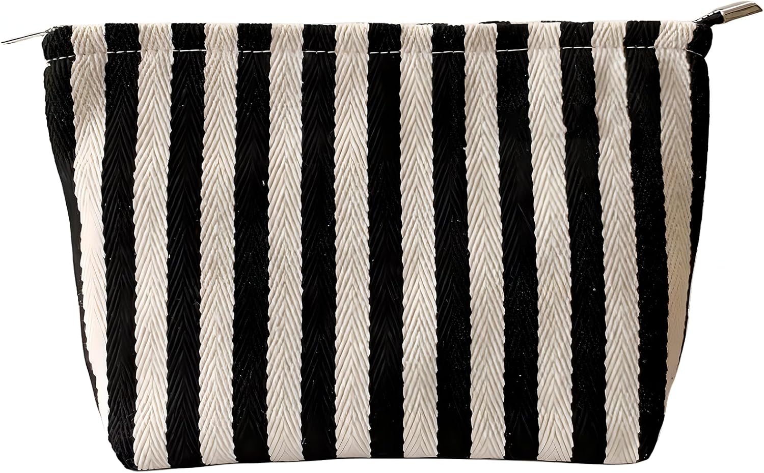 - Durable & Lightweight Canvas Makeup Bag– Made with tightly woven striped canvas that is both light to carry and built to last, perfect for everyday use or travel.
