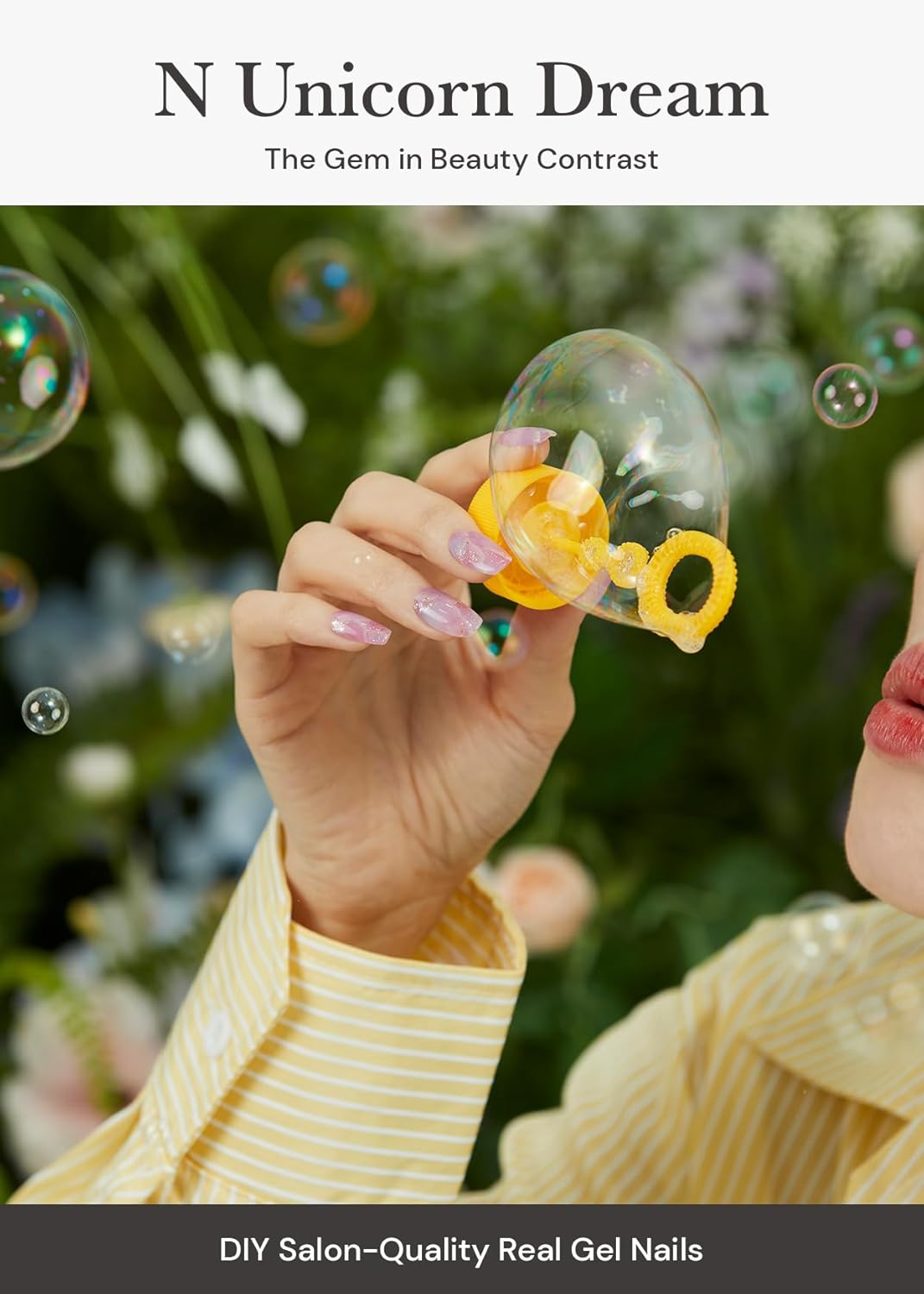 ohora Semi Cured Gel Nail Strips (N Unicorn Dream) - Works with Any Lamps, Salon-Quality, Long Lasting, Easy to Apply & Remove - Includes 2 Prep Pads, Nail File & Wooden Stick