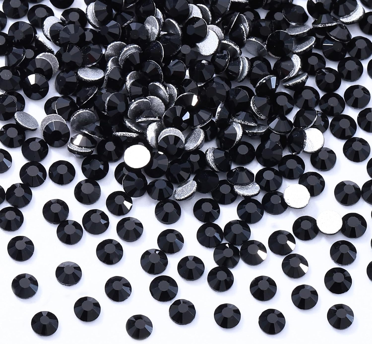 Black Flatback Rhinestones, Glass Rhinestones for Nail Art and Craft, Glue Fix, Loose Crystal Gemstones(Black, SS6, 2880pcs, 1.9-2.0mm)