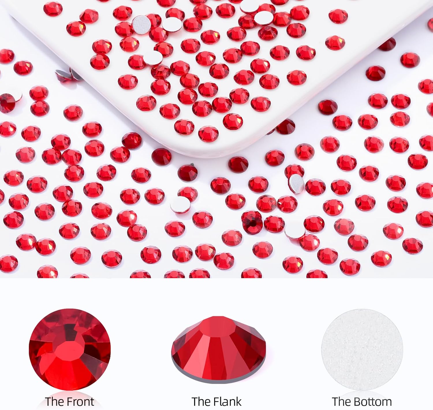 Red Flatback Rhinestones, Glass Rhinestones for Nail Art and Craft, Glue Fix, Loose Crystal Gemstones(Red, SS12, 2880pcs, 2.9-3.0mm)
