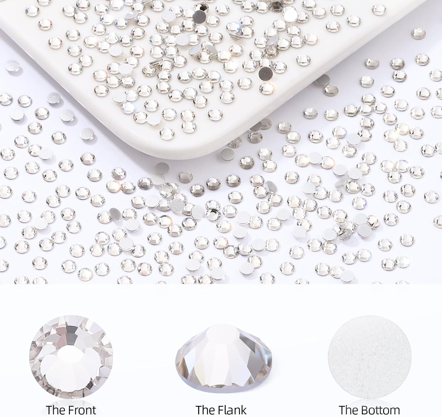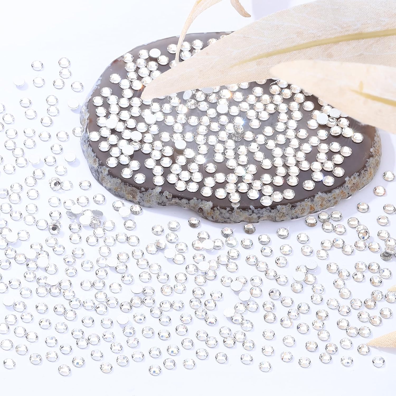 Crystal Clear Flatback Rhinestones, Glass Rhinestones for Nail Art and Craft, Glue Fix, Loose Crystal Gemstones(Crystal, SS3, 2880pcs, 1.3-1.4mm)