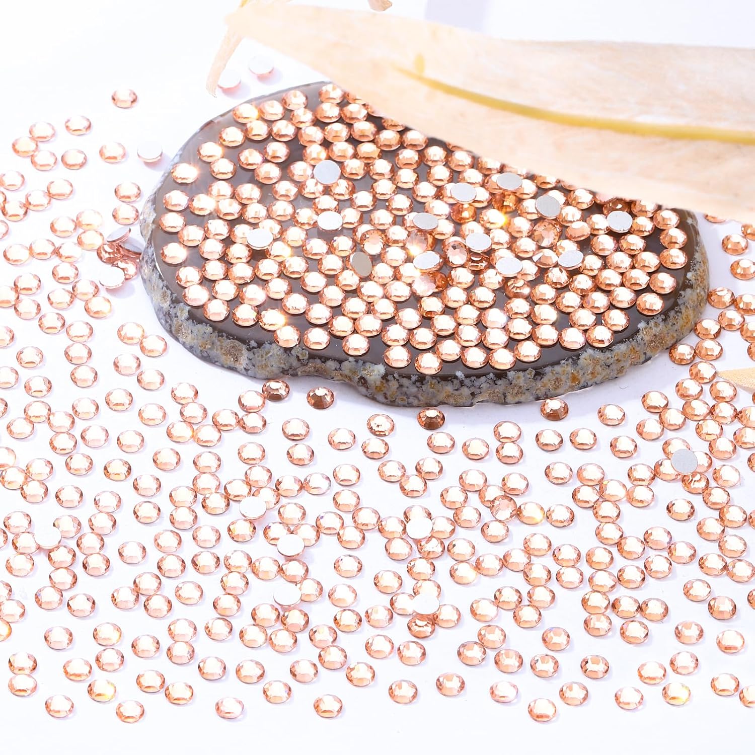 Champagne Flatback Rhinestones, Glass Rhinestones for Nail Art and Craft, Glue Fix, Loose Crystal Gemstones(Champagne, SS10, 2880pcs, 2.7-2.8mm)