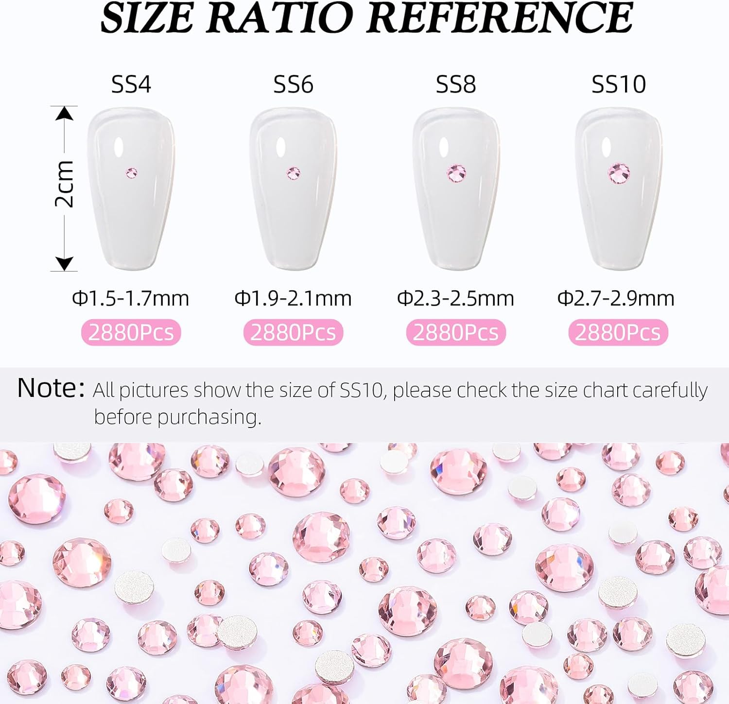 - Product Packaging: Bags packaging SS8 2.3~2.5 MM - 2880 Pcs pink flatback rhinestones.