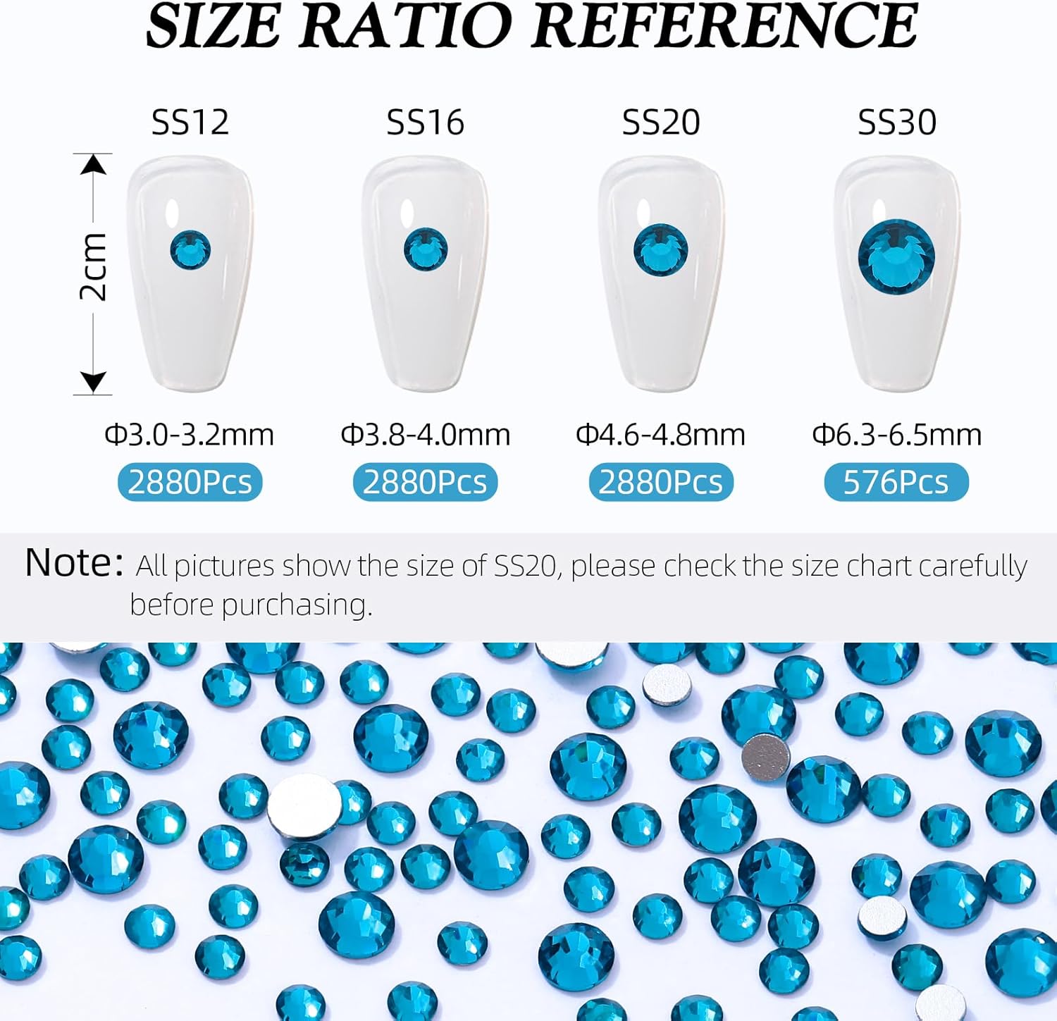 Malachite Blue Flatback Rhinestones, Glass Rhinestones for Nail Art and Craft, Glue Fix, Loose Crystal Gemstones(Malachite Blue, SS20, 2880pcs, 4.6-4.8mm)