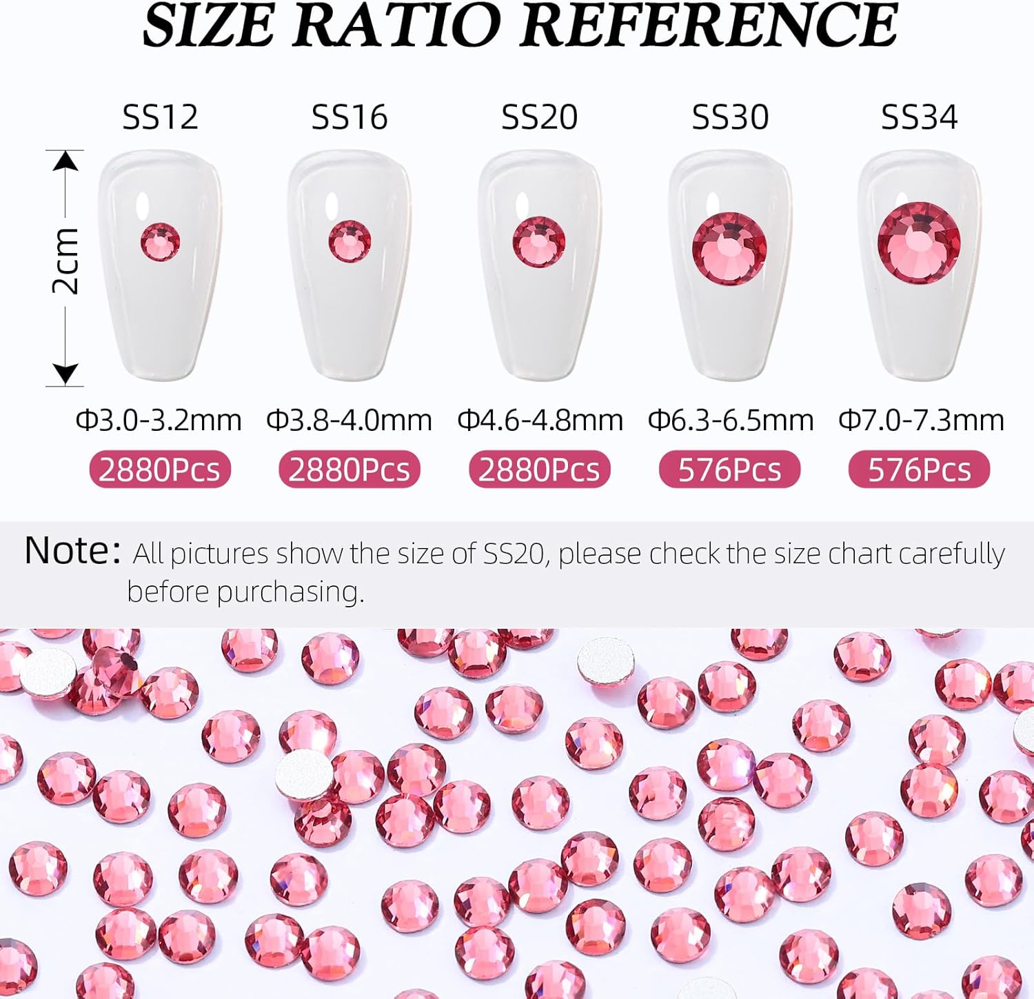 - Product Packaging: Bags packaging SS34 7.1~7.3 MM - 576 Pcs rose flatback rhinestones.