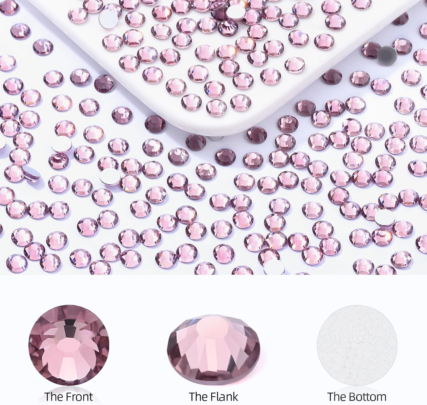 Light Amethyst Flatback Rhinestones, Glass Rhinestones for Nail Art and Craft, Glue Fix, Loose Crystal Gemstones(Lt.Amethyst, SS16, 2880pcs, 3.8-4.0mm)