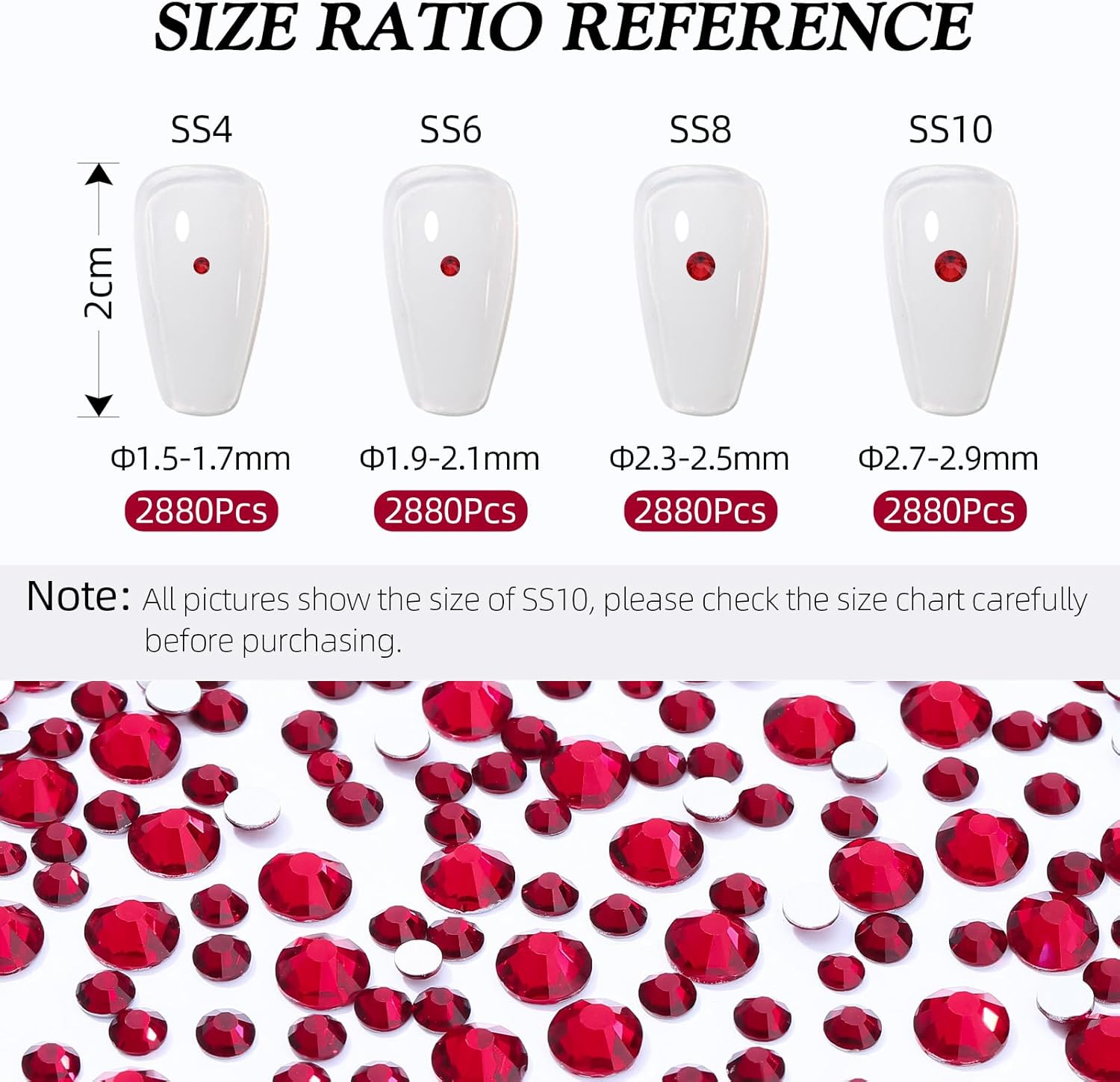 Siam Flatback Rhinestones, Glass Rhinestones for Nail Art and Craft, Glue Fix, Loose Crystal Gemstones(Siam, SS4, 2880pcs, 1.5-1.7mm)