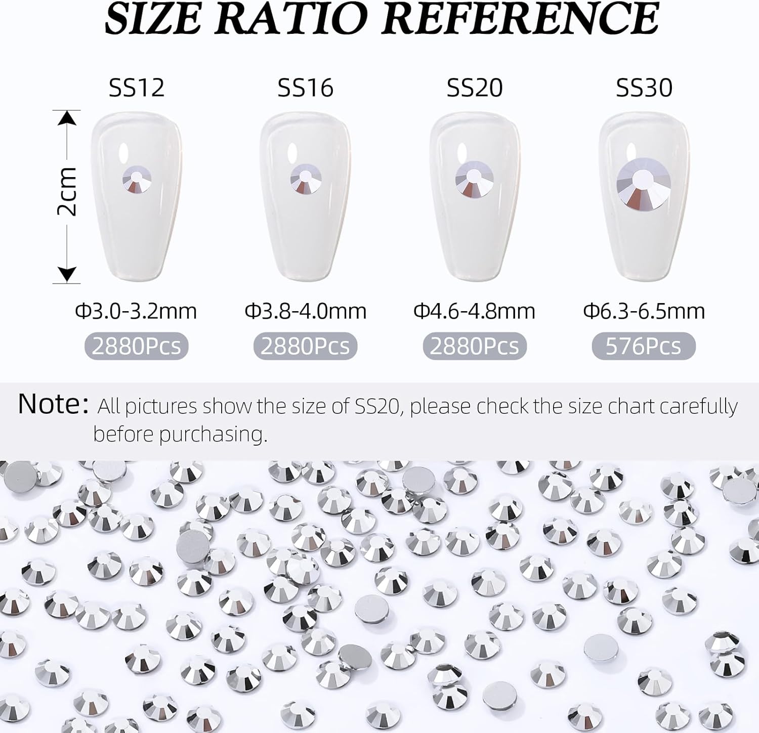 Silver Flatback Rhinestones, Glass Rhinestones for Nail Art and Craft, Glue Fix, Loose Crystal Gemstones(Silver, SS16, 2880pcs, 3.8-4.0mm)