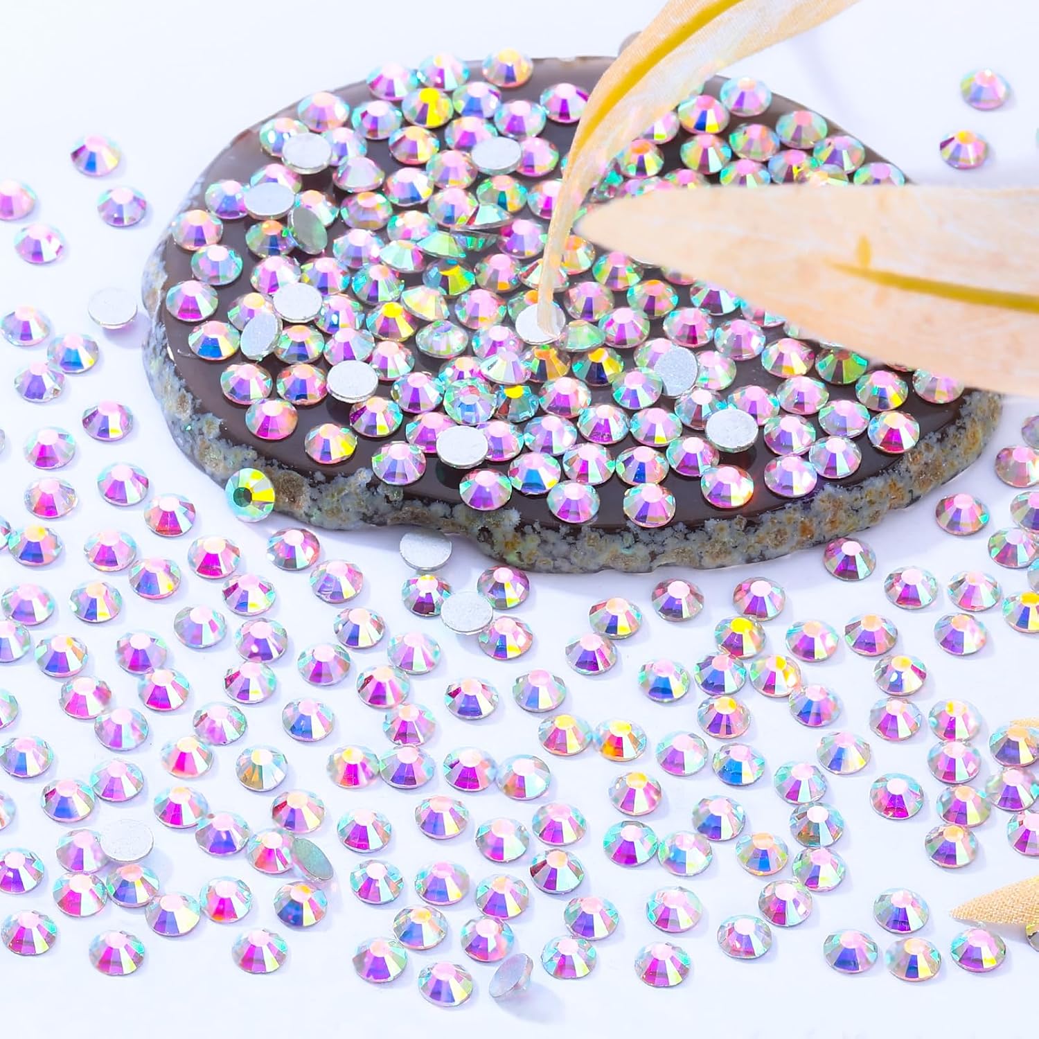 Crystal AB Flatback Rhinestones, Glass Rhinestones for Nail Art and Craft, Glue Fix, Loose Crystal Gemstones(Crystal AB, SS12, 2880pcs, 2.9-3.0mm)