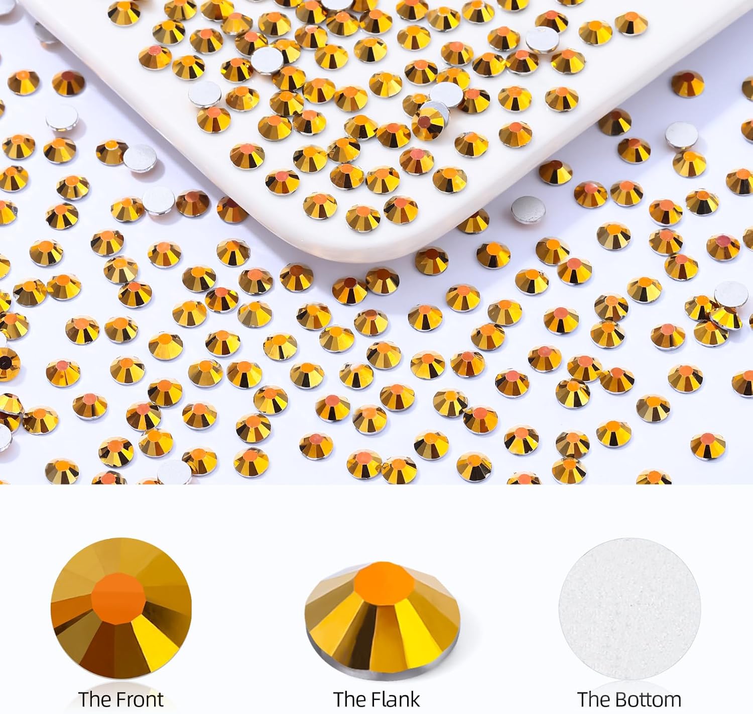 Gold Flatback Rhinestones, Glass Rhinestones for Nail Art and Craft, Glue Fix, Loose Crystal Gemstones(Gold, SS12, 2880pcs, 2.9-3.0mm)