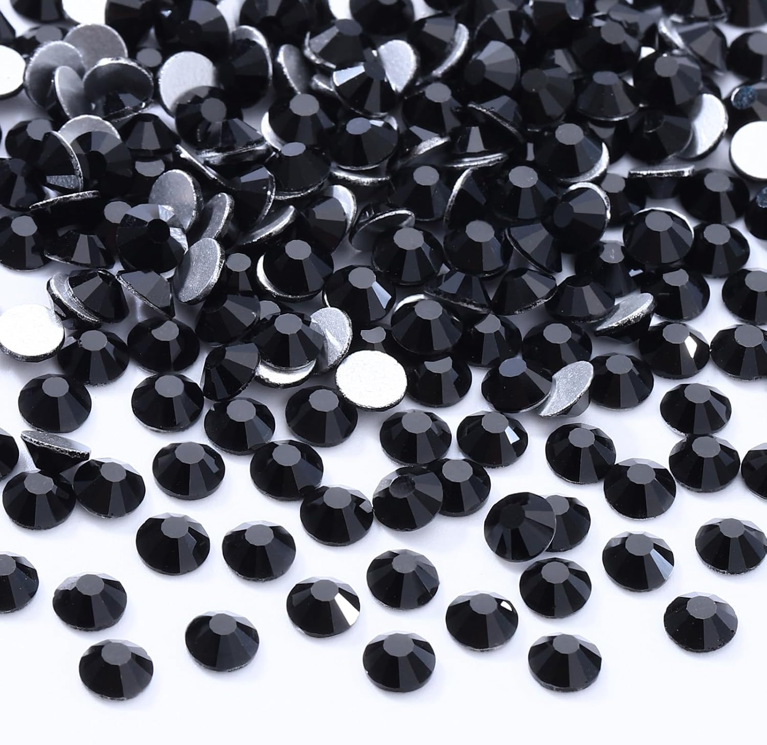 Black Flatback Rhinestones, Glass Rhinestones for Nail Art and Craft, Glue Fix, Loose Crystal Gemstones(Black, SS30, 576pcs, 6.4-6.6mm)