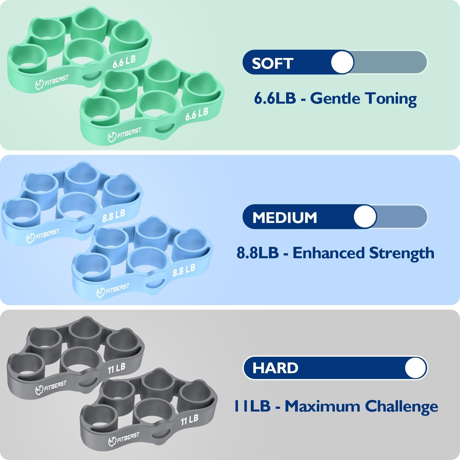 - ๐จ๐ป๐ฏ๐ฟ๐ฒ๐ฎ๐ธ๐ฎ๐ฏ๐น๐ฒ ๐๐ถ๐ป๐ด๐ฒ๐ฟ ๐ฆ๐๐ฟ๐ฒ๐๐ฐ๐ต๐ฒ๐ฟ: Elevate your finger strength with our stretch bands, offering three distinct resistance levels: Soft (6.6LB), Medium (8.8LB), and Hard (11LB), each level represented by two bands to match your training needs. Designed for durability, these bands are high-stretch and break-resistant, perfect for intense workouts. The ergonomic design, with a 0.8-inch thumb hole and 0.67-inch finger holes, ensures a comfortable and secure fit for all-day use.