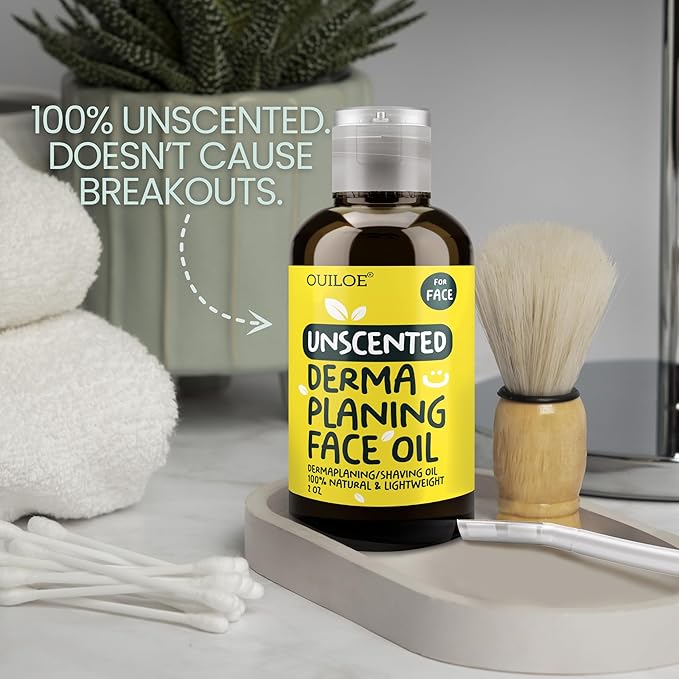 Dermaplaning Oil for Women - Face Shaving Oil for Oily Skin - Non Comedogenic, Fragrance Free, Organic, Natural and Lightweight - Use with Dermaplaning Tool for Face, 2oz by Ouiloe