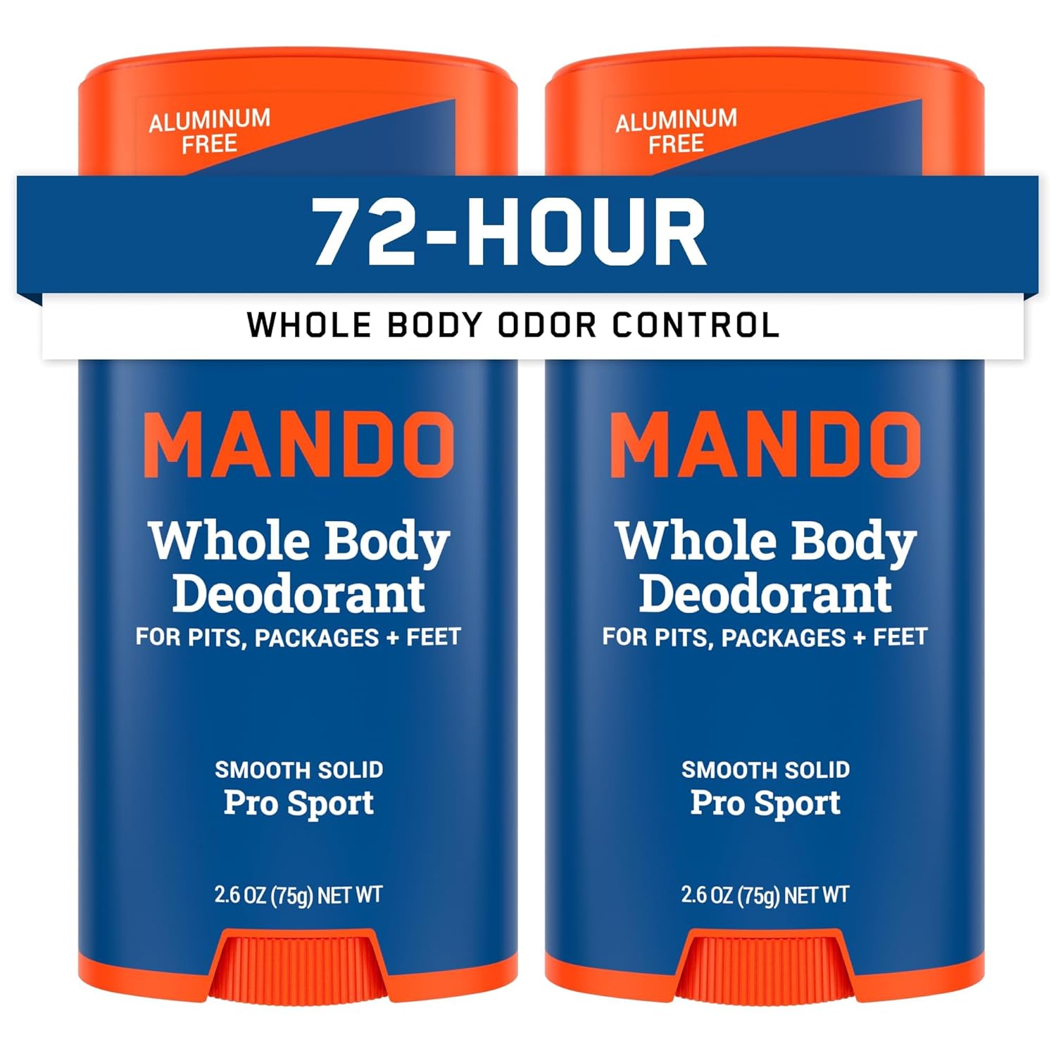 Mando Whole Body Deodorant For Men - Smooth Solid Stick - 72 Hour Odor Control - Aluminum Free, Baking Soda Free, Skin Safe - 2.6 ounce (Pack of 2) - Pro Sport