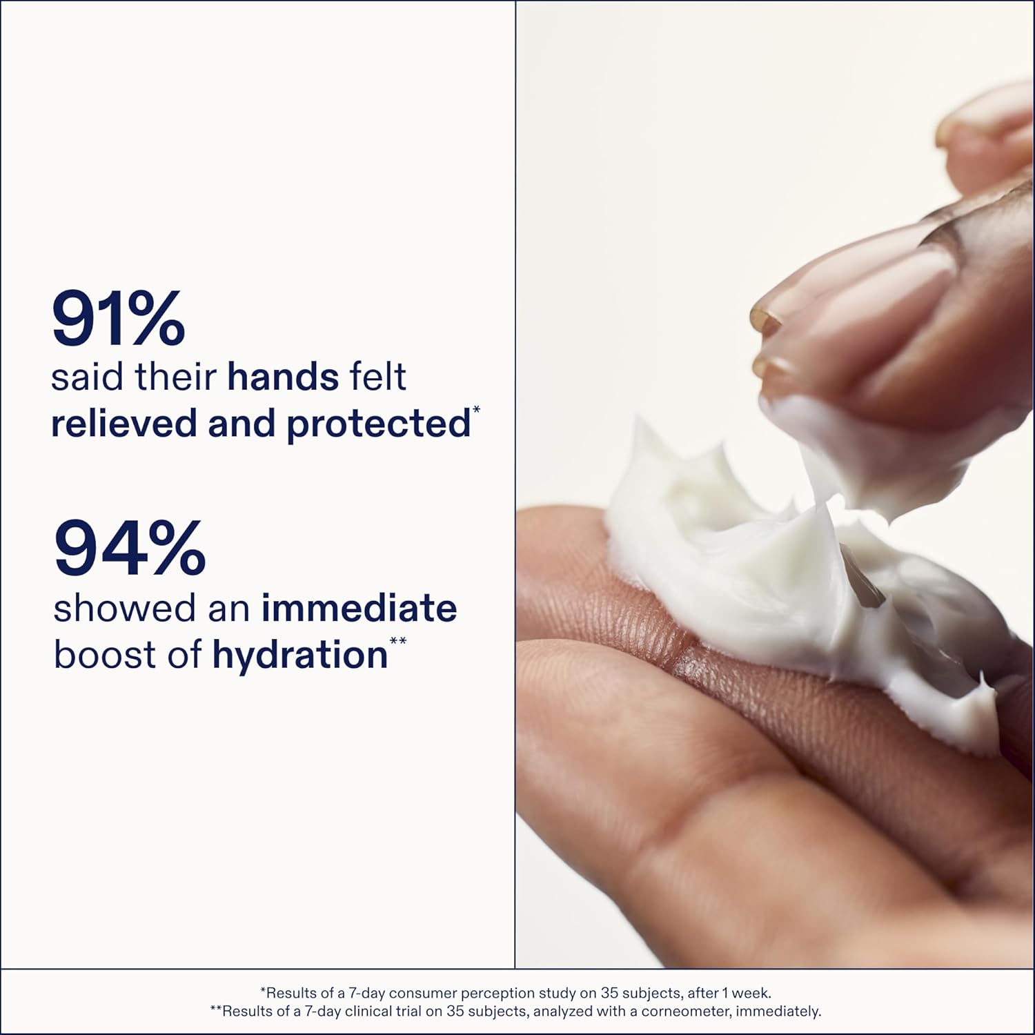 - CLINICAL RESULTS - 94% felt an immediate boost of hydration & saw visible redness decrease by an average of 61% after 1 week. 91% said their hands felt relieved & protected. 91% experienced a significant increase in hydration after 1 week.