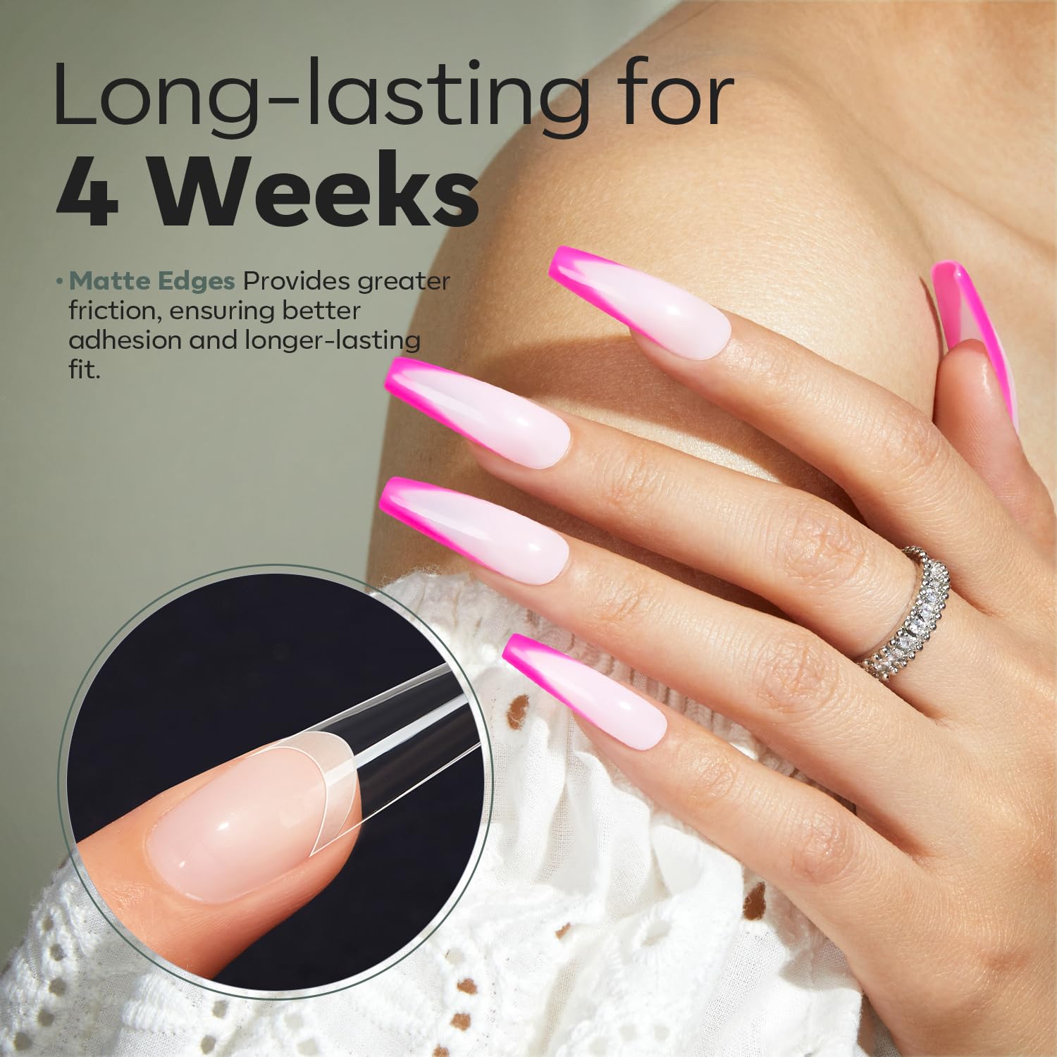 - Soft & Long-Lasting Wear: Matte thin trailing edge provides greater friction, ensuring better adhesion and longer-lasting fit, thickened front edge design is not easy to break, with no crease after bend. Whether you're rocking them for a night out or weeks on end, they'll stay put and look fabulous