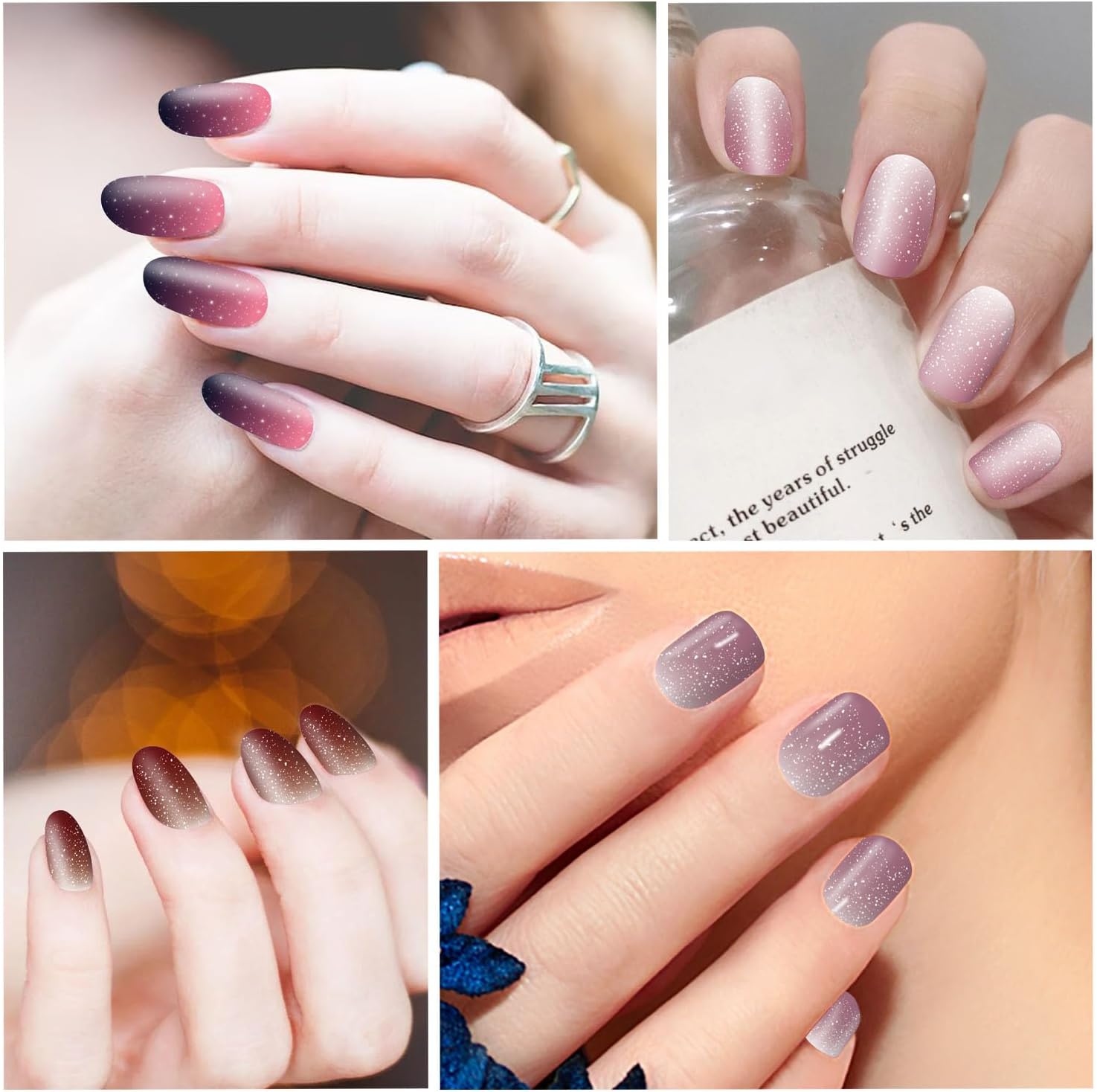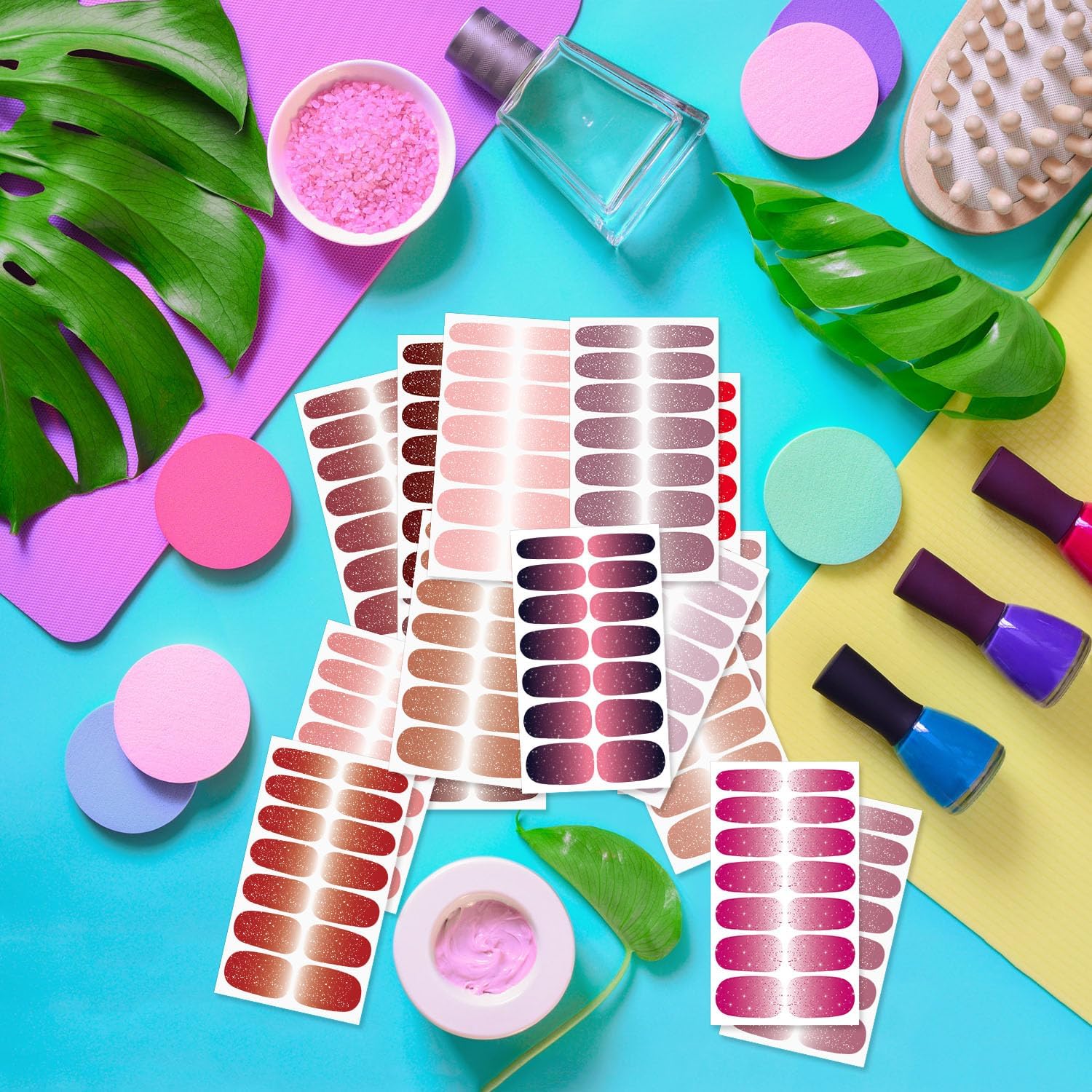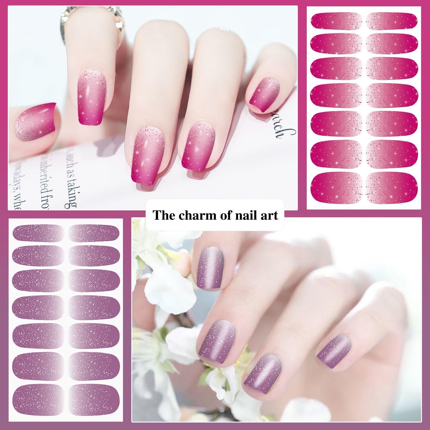 - [Gradient Color&Glitter Style] Designed exclusively by DANNEASY, the nail strips set include glitter&gradient style, you can create simple and luxury nails design. you can pair nail decorations, nail stickers, and other nail accessories to get a youthful and fashionable nail design.