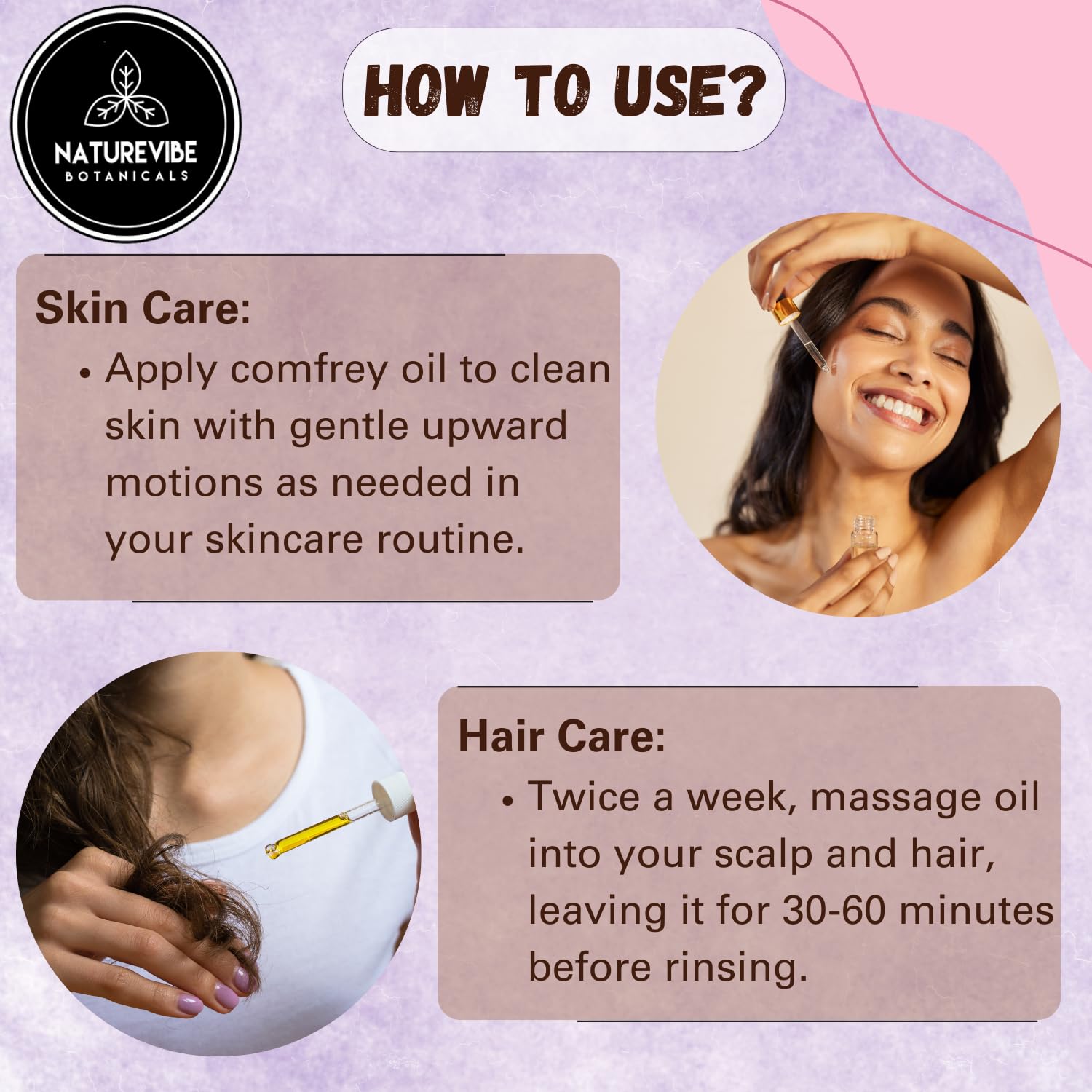 - ✅Comfrey Oil by Naturevibe Botanicals comes in a resealable jar to maintain its freshness throughout. Naturevibe Botanicals Comfrey Oil is a cold pressed oil which does not contain fillers or additives and is 100% pure which is used as a body moisturizing oil for face, hands and nails by both men and women.