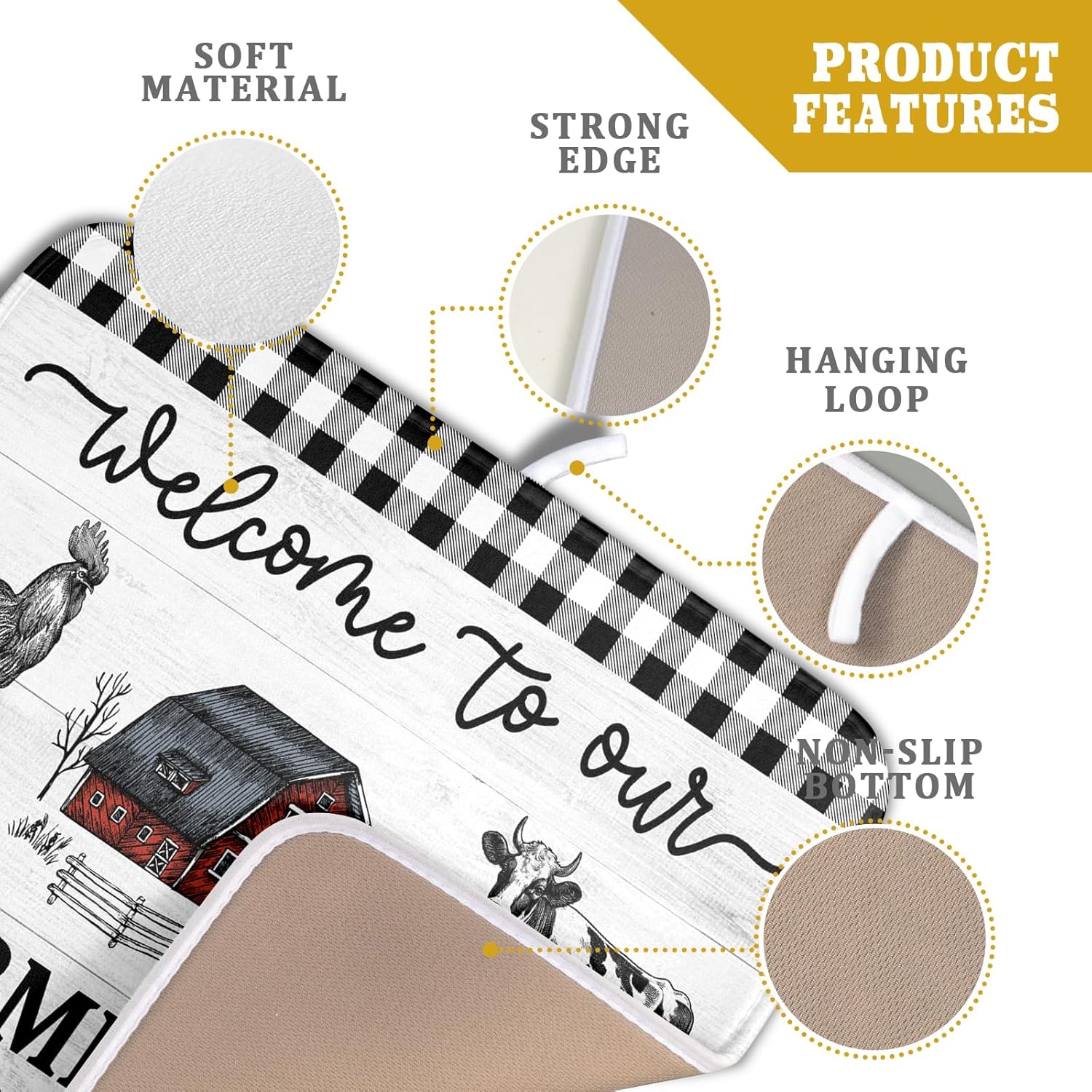 Farmhouse Barn Dish Drying Mat 16x18 Inch Cow Rooster Absorbent Microfiber Dish Drainer Rack Pad Bottles Protector for Kitchen Counter