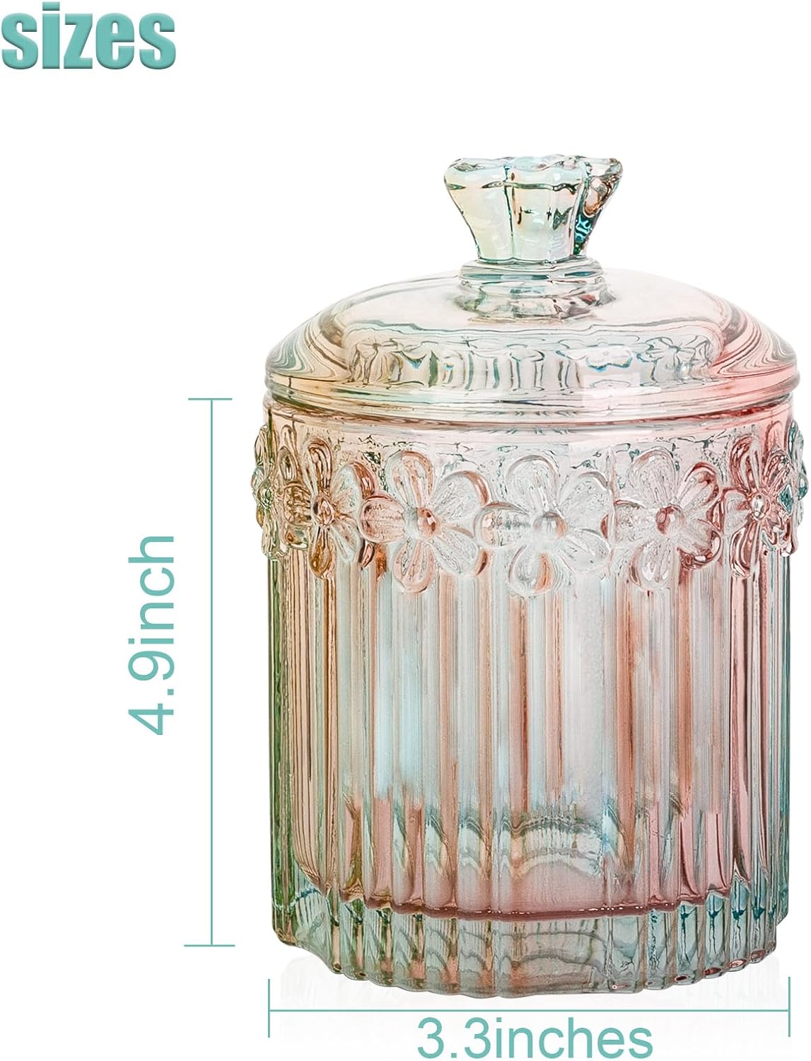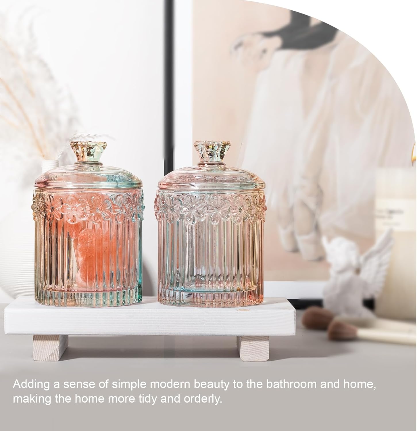 - Multifunctional Storage: Clear glass jar with lid dispenser for such as Q-tip, cotton balls, cotton swabs, cotton rounds, floss picks, tampons, bath salts, hair tie band, makeup brush, beauty egg, face brush, crayons, candy, pens, clip, and more small things