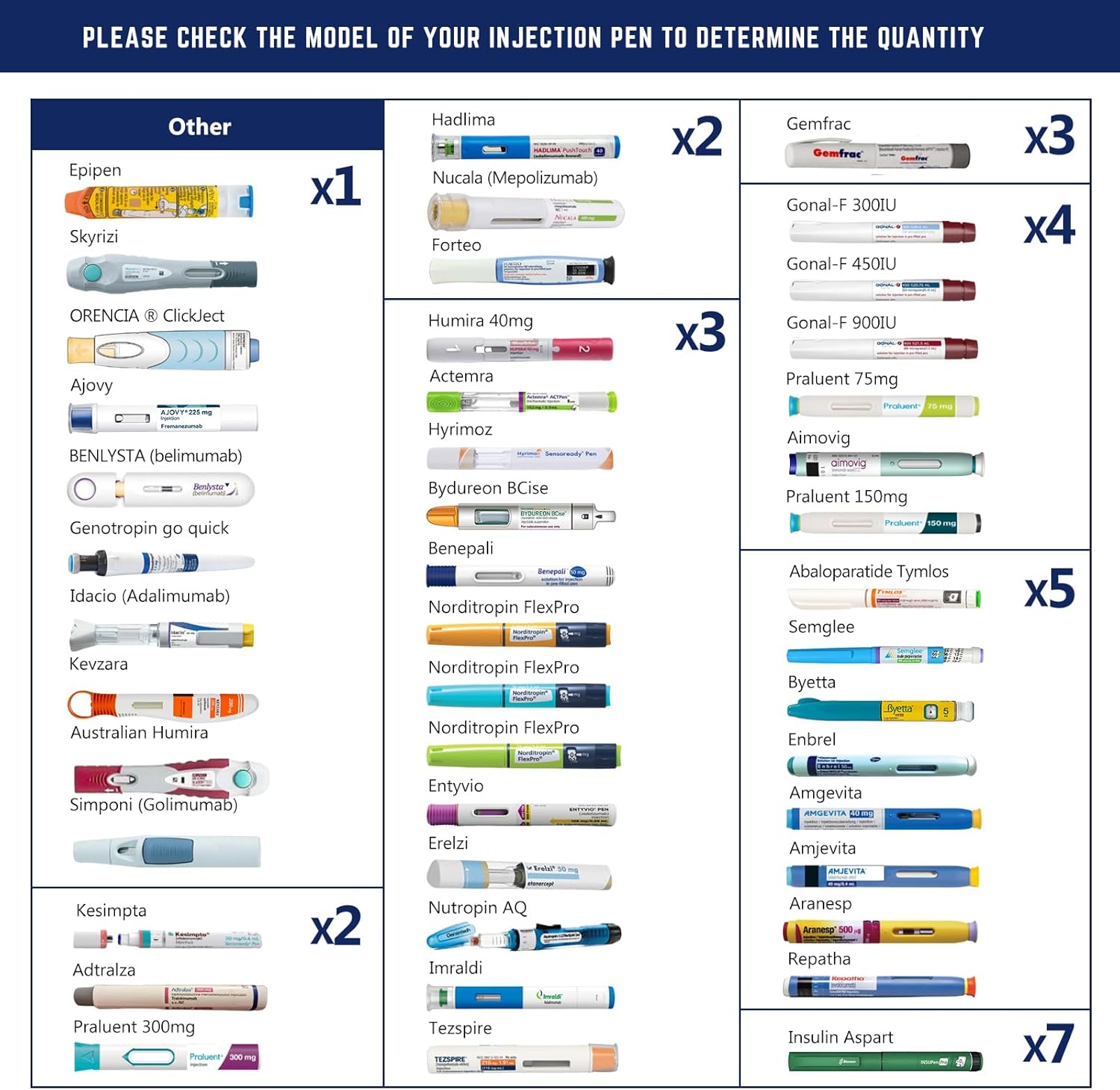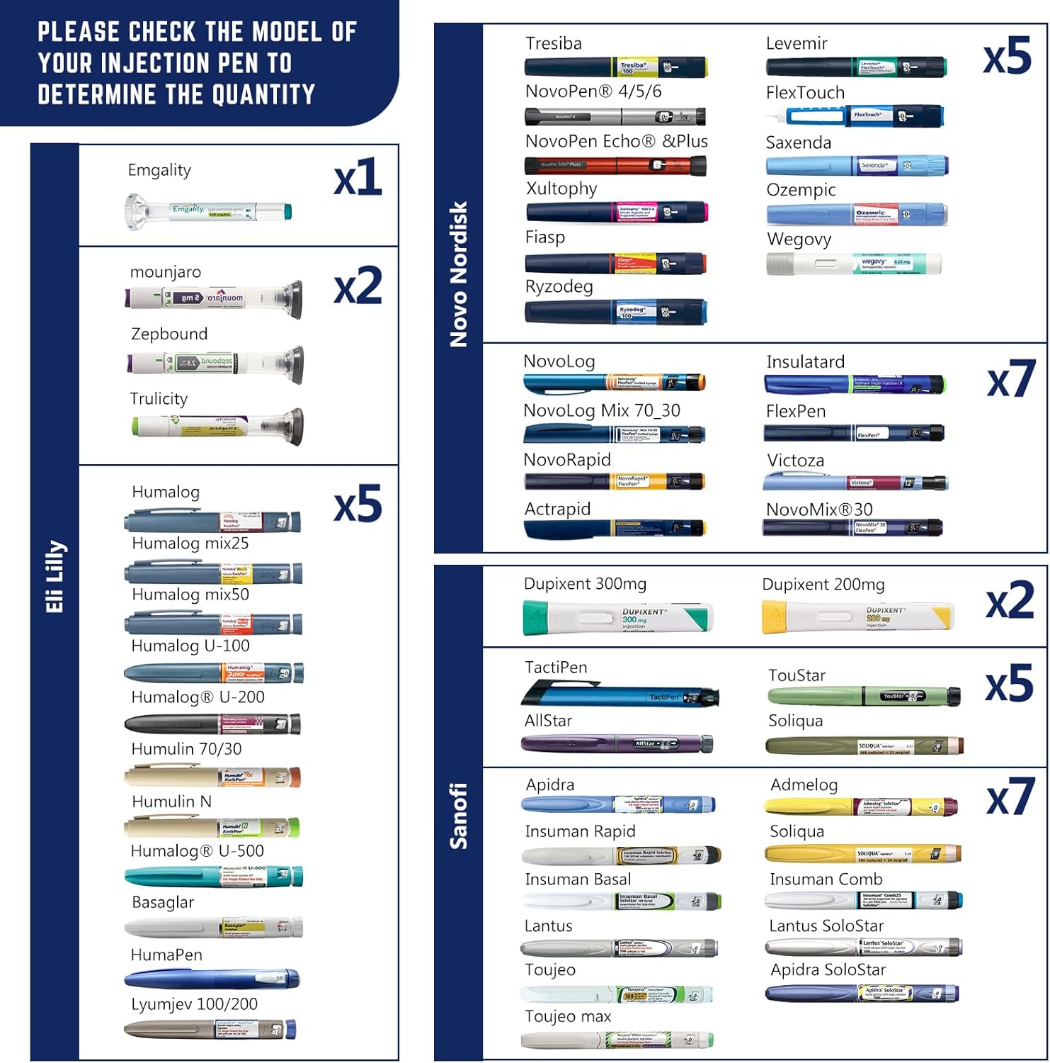 - How many injection pens can I put in : We have obtained the sizes of 95% of the common brands of injection pens on the market and made a detailed capacity reference chart. 1)You can find a table on our page for reference to buy the right cooler. 2) If you can't find your injection pen model, please be sure to contact us, we will be happy to help you solve your problem