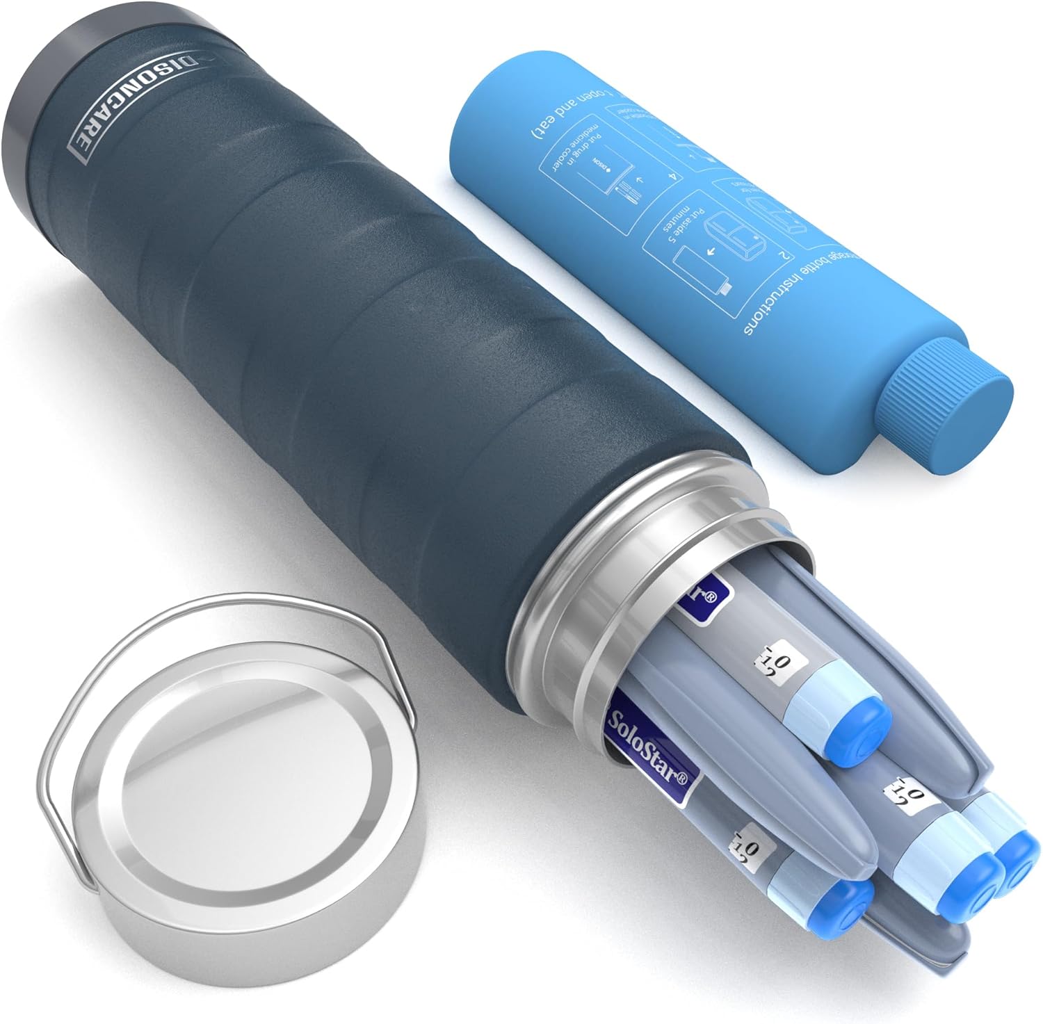 - How long can medication cooler keep cold : 1)The inner and outer layers of the cooler are made of 18/8 (304) food-grade stainless steel, and the middle is double-layered vacuum. 2)Put the blue gel bottle in the freezer for 6-8H before use. After taking it out,the gel bottle will slowly release the coldness, Put it in the vacuum cooler and keep cold for up to 60H in an outdoor environment of 86℉(30℃). 3)If use a white ice water bottle, it can be extended by 14H, total keep cold for up to 74H