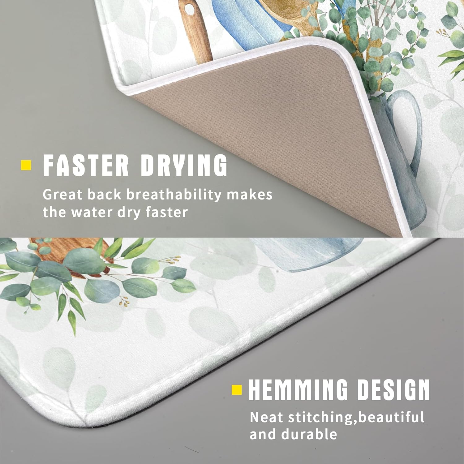 - 【Premium Material】This absorbent dish drying mat is made of polyester surface material, and the middle is composite sponge material, which quickly absorbs water to keep the kitchen countertop dry and clean. The dish drying mat can been double-sided uses with strong edging, not easy to disperse.
