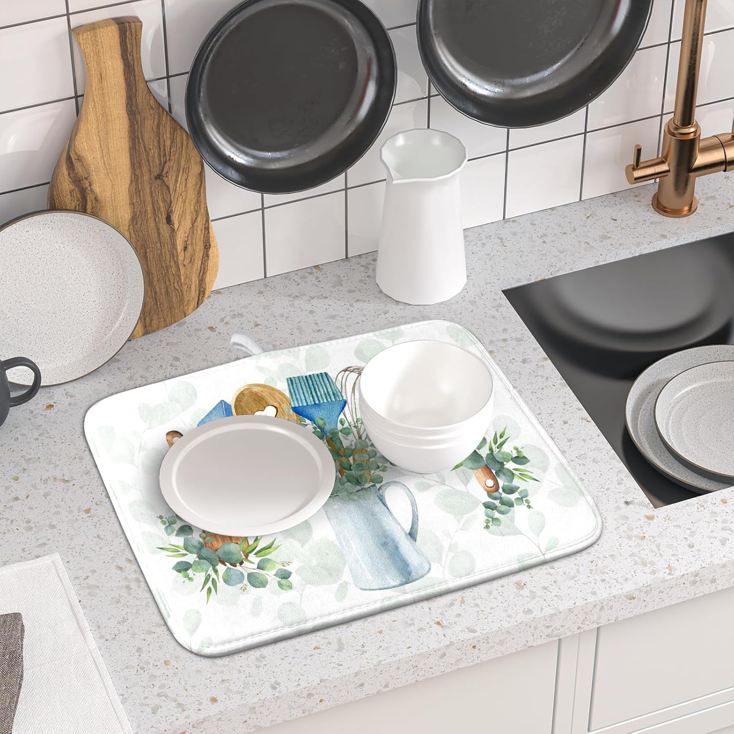 Sage Green Dish Drying Mat for Kitchen Counter, Cooking Supplies Reversible Dish Drainer Rack Pad Fast Dry Kitchen Accessories 16x18 Inch