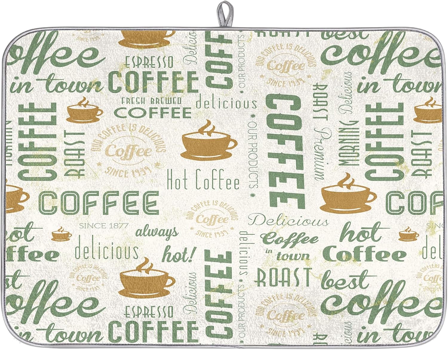 Hexteria Dish Drying Mat for Kitchen Counter, Absorbent Coffee Bar Mat, Dish Drainer Rack Mat, Green