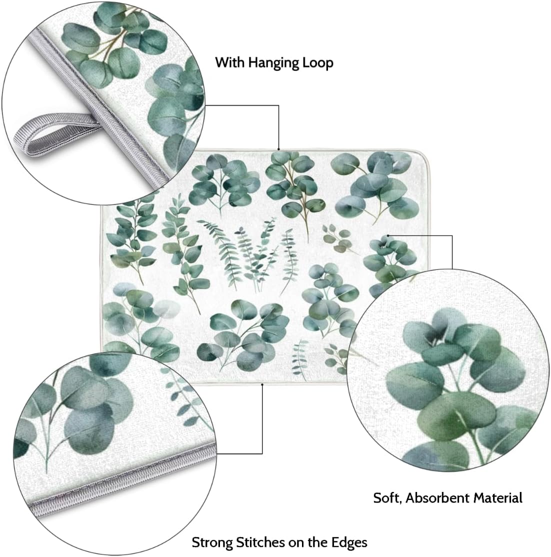 Hexteria Dish Drying Mat for Kitchen Counter Dish Mat Pad Absorbent Microfiber Kitchen Drying Mat Dish Drainer Rack Mat, 18x24 Inch, Eucalyptus Leaves
