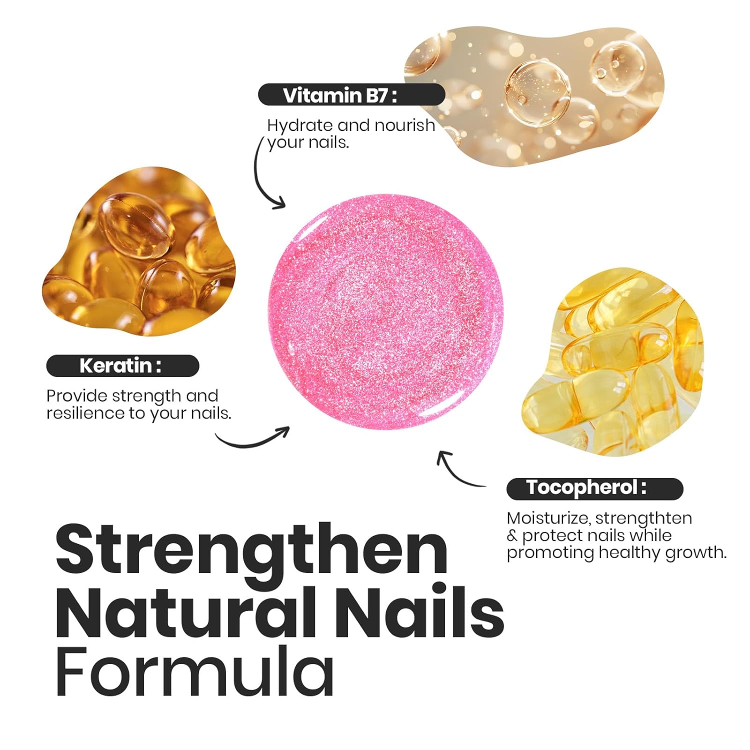 Beetles Glitter Nail Polish Set, 6 Colors Pink Nail Polish Kit Shimmer Gold Nude Jelly Pink Reverie Quick Dry Fingernail Polish Gifts for Women Salon DIY Manicure Kit